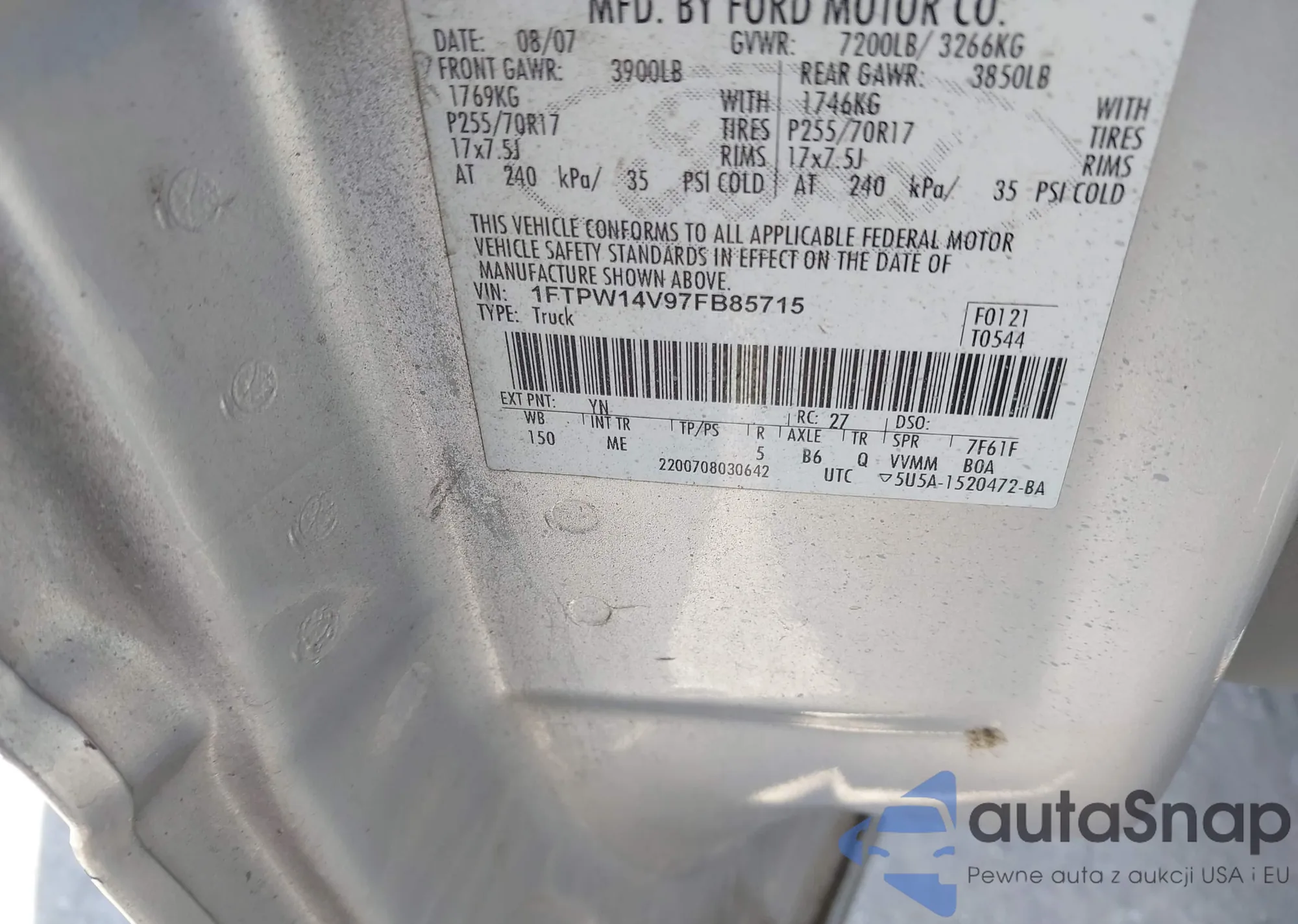 • VIN: 1FTPW14V97FB85715