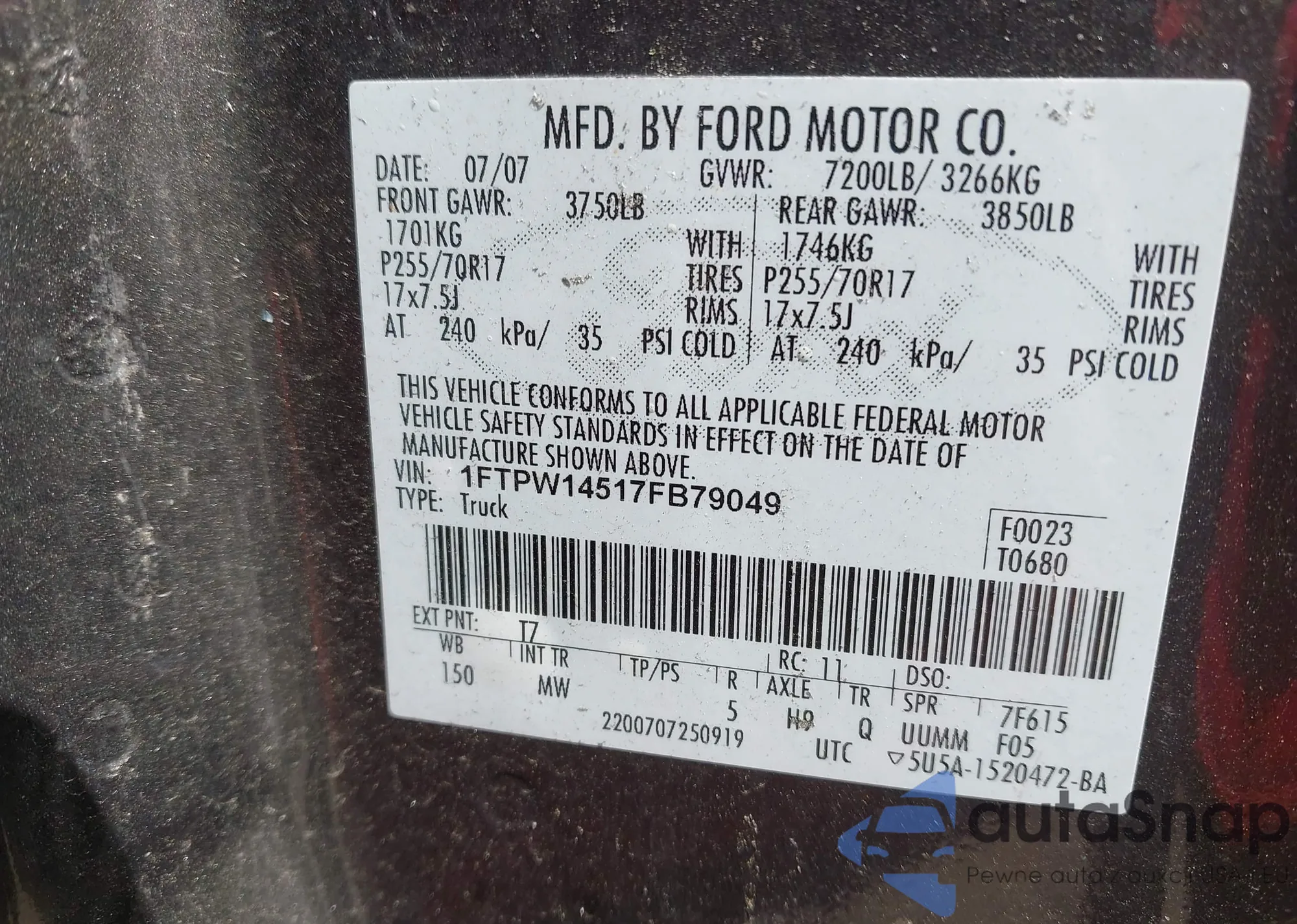VIN: 1FTPW14517FB79049