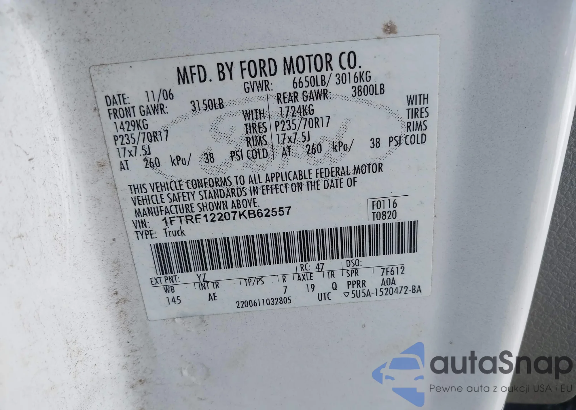 VIN: 1FTRF12207KB62557