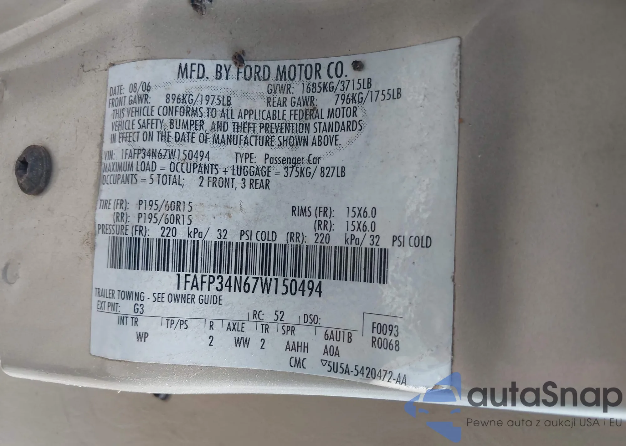 VIN: 1FAFP34N67W150494