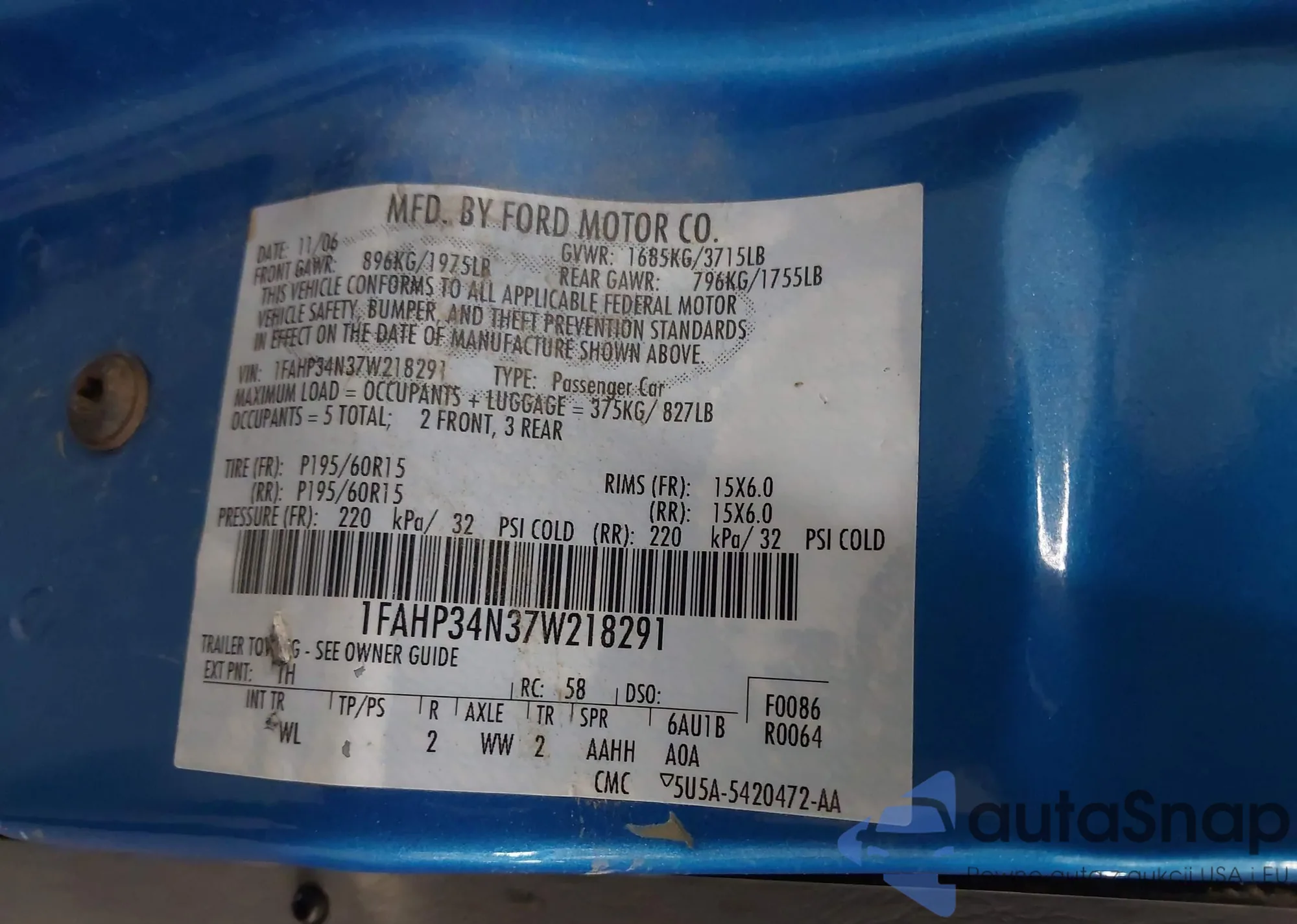VIN: 1FAHP34N37W218291