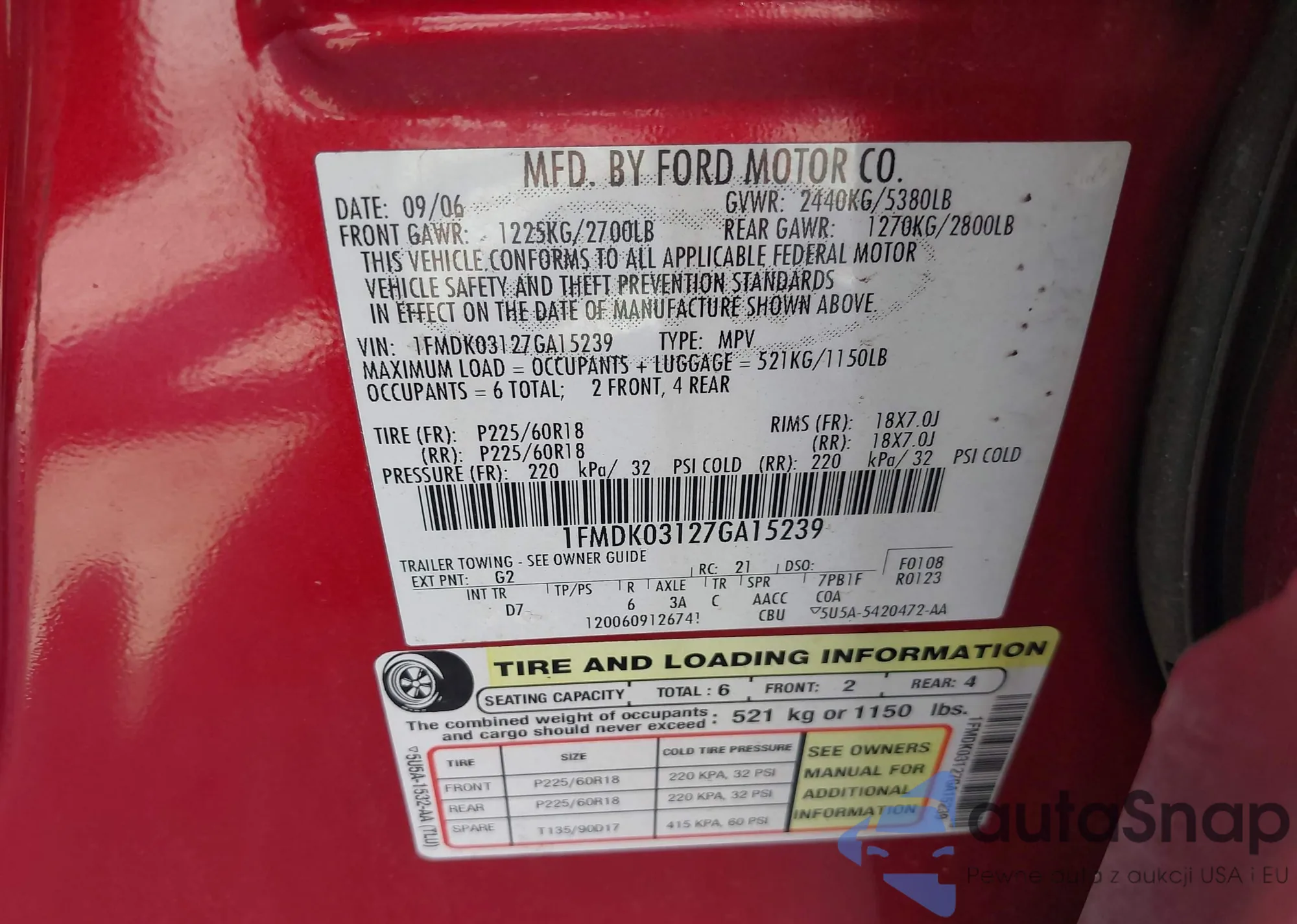 VIN: 1FMDK03127GA15239