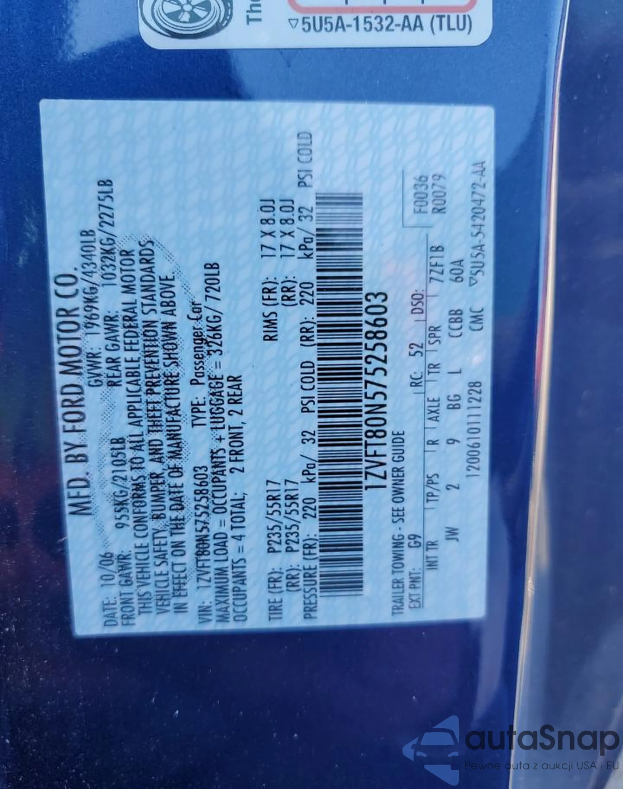 VIN: 1ZVFT80N575258603
