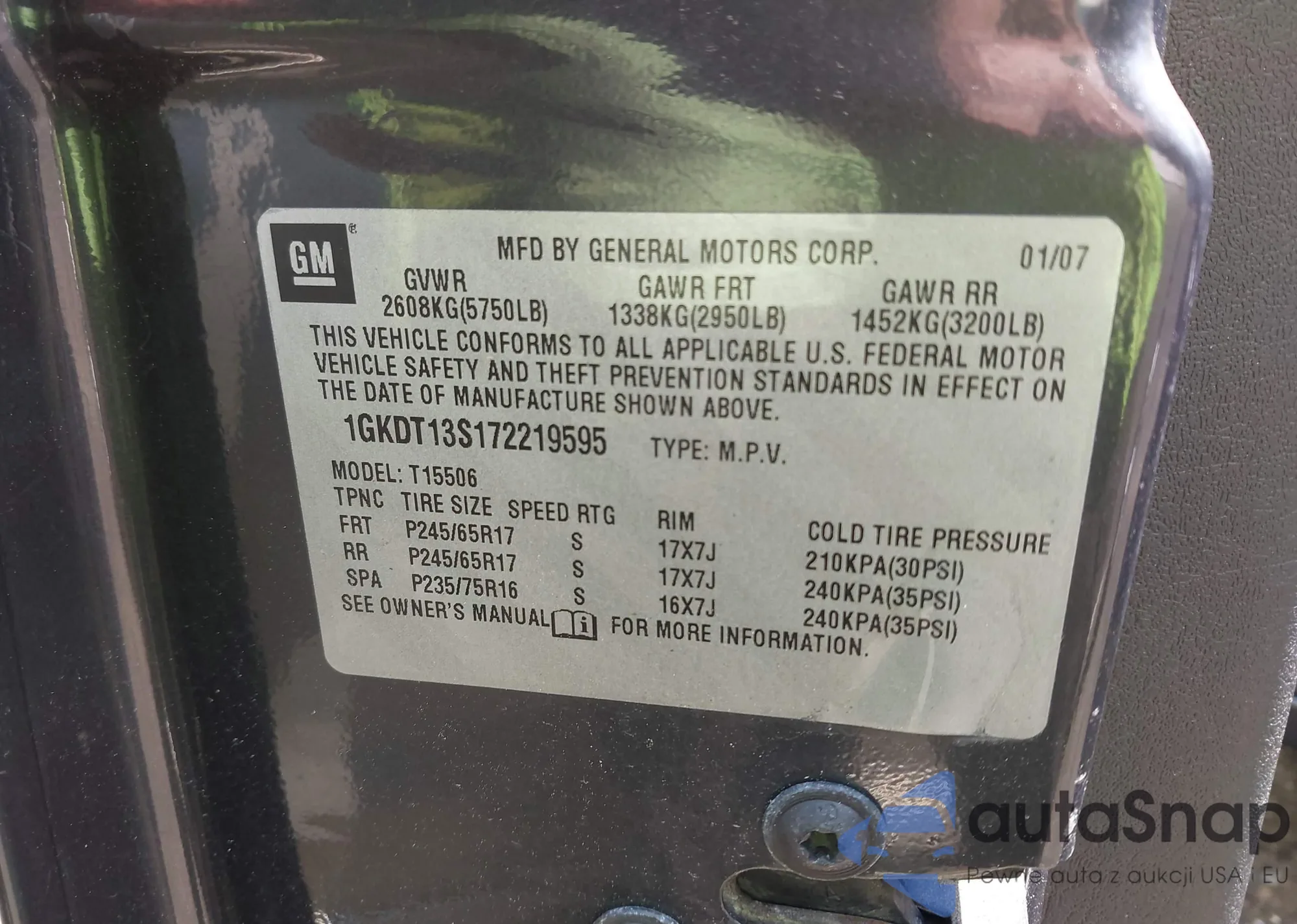 VIN: 1GKDT13S172219595