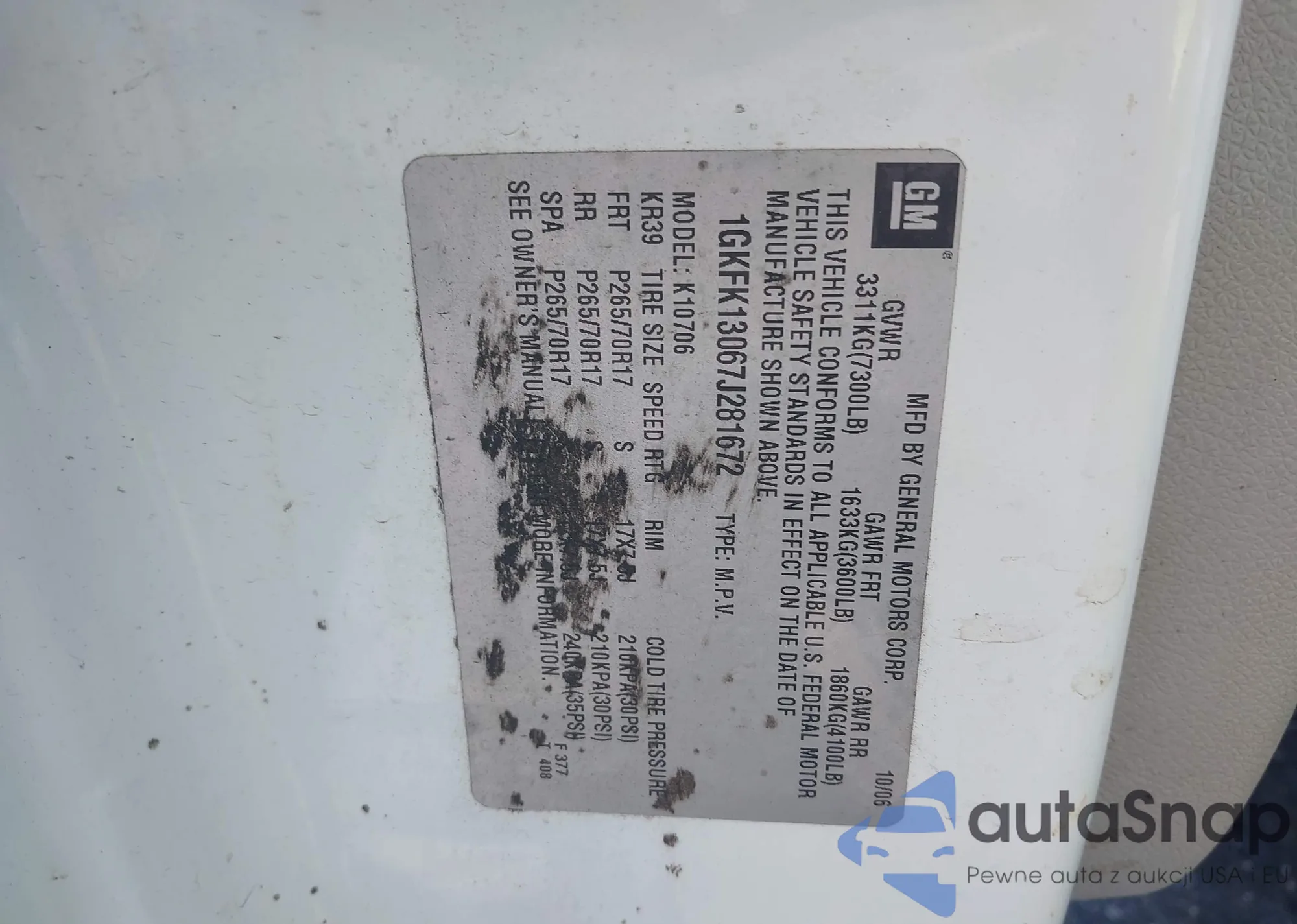 VIN: 1GKFK13067J281672
