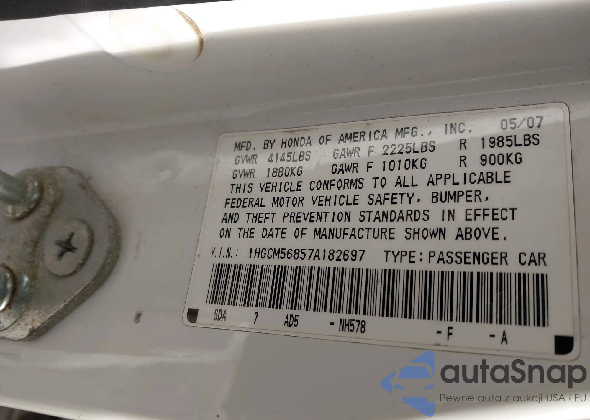 VIN: 1HGCM56857A182697