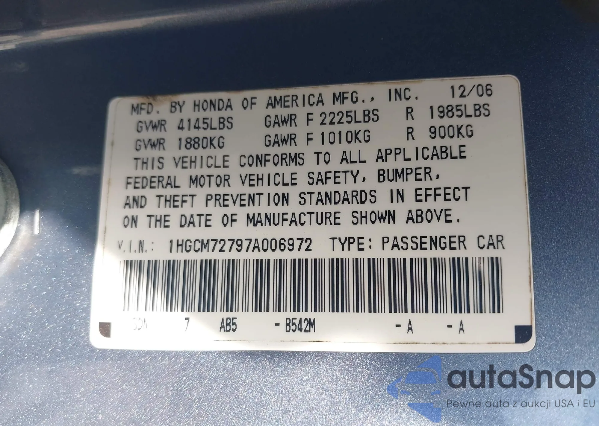 VIN: 1HGCM72797A006972