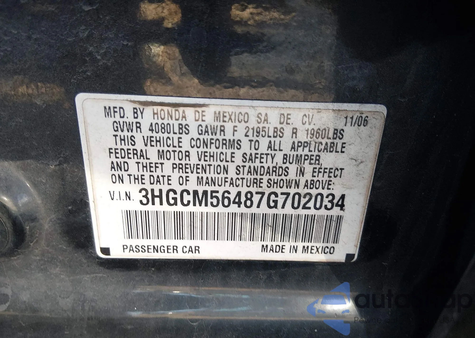 VIN: 3HGCM56487G702034