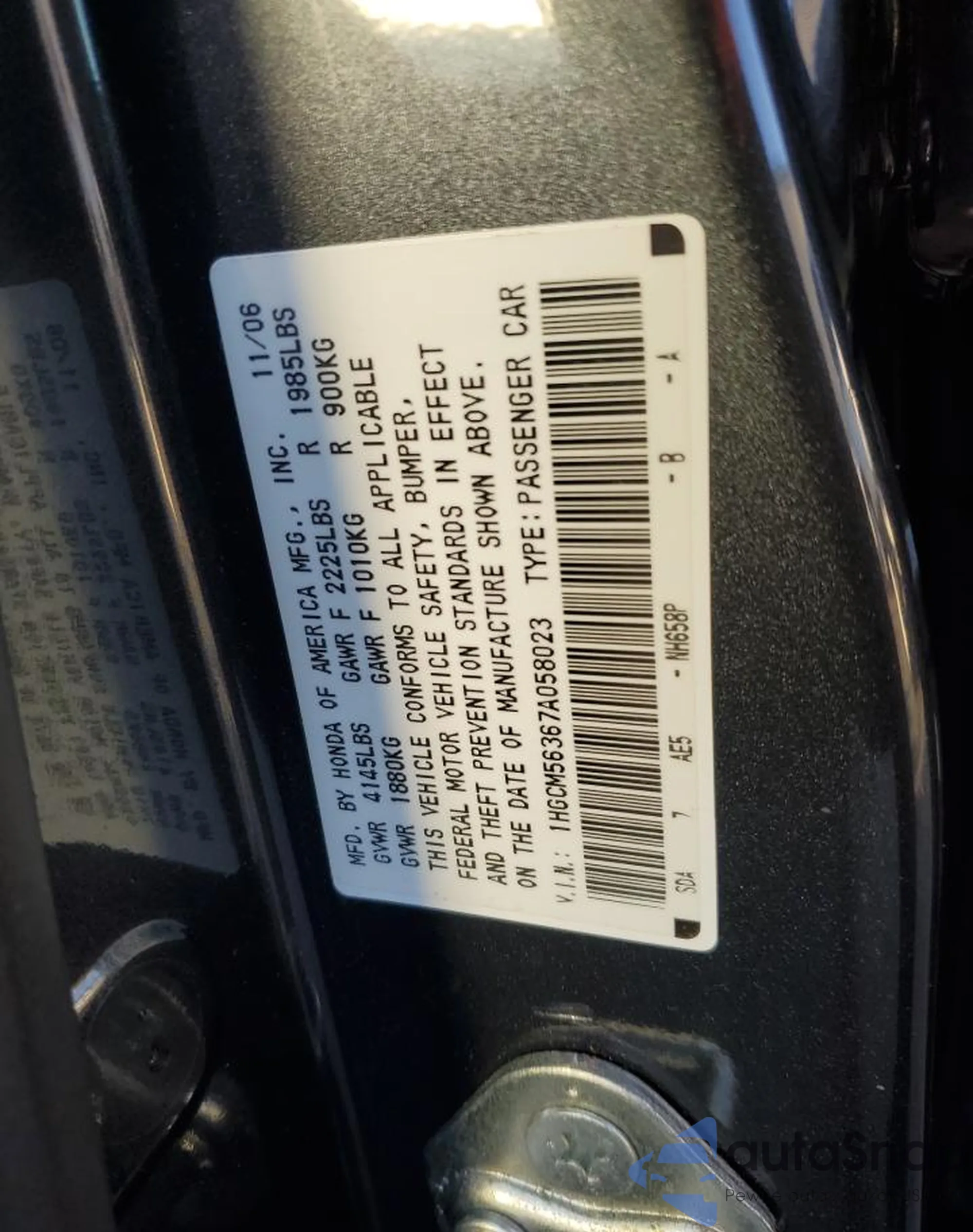 VIN: 1HGCM56367A058023