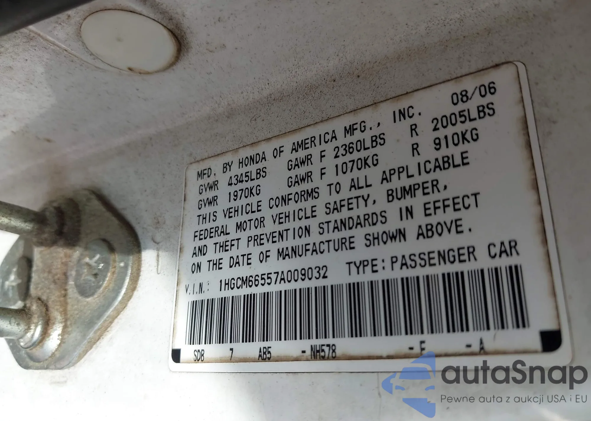 VIN: 1HGCM66557A009032