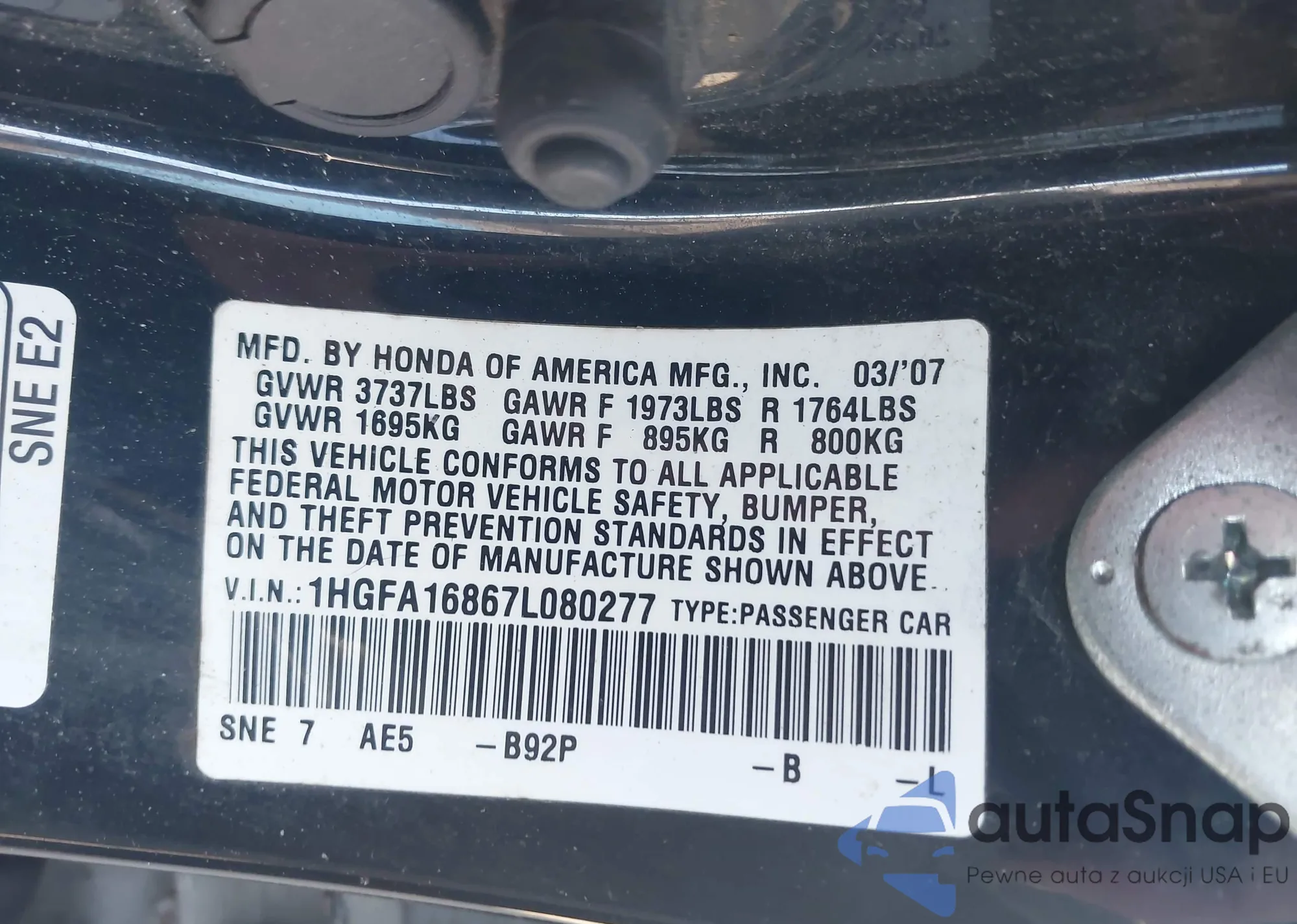 VIN: 1HGFA16867L080277