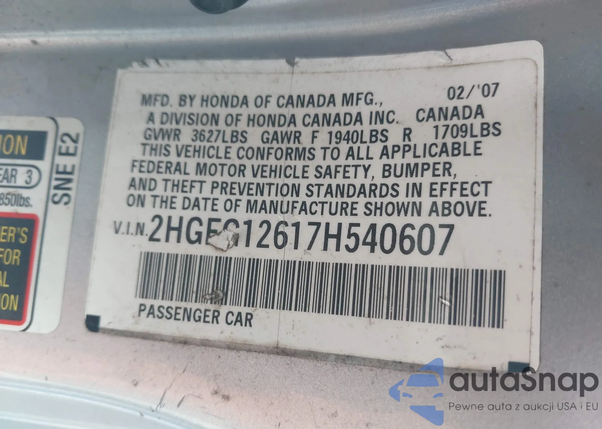 VIN: 2HGFG12617H540607