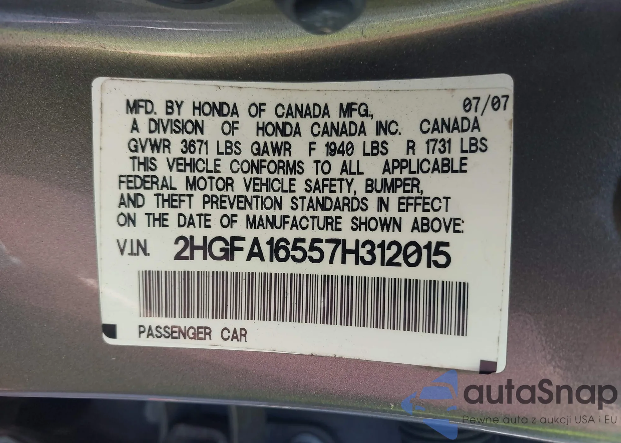 VIN: 2HGFA16557H312015