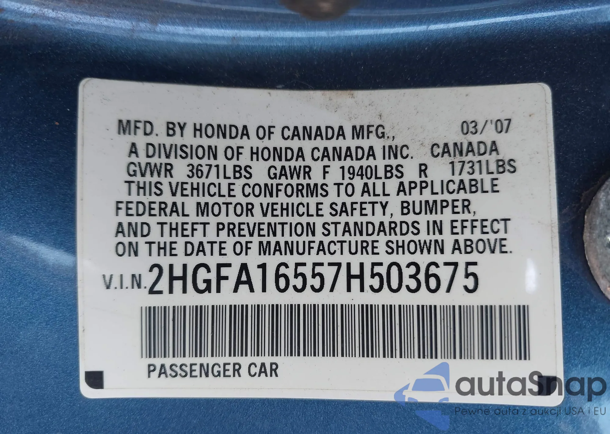 VIN: 2HGFA16557H503675
