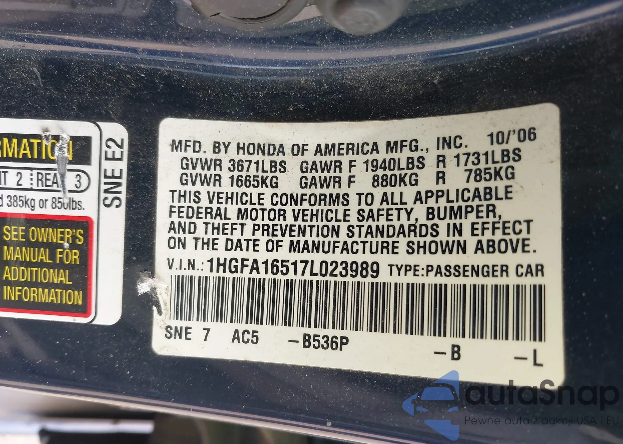 VIN: 1HGFA16517L023989