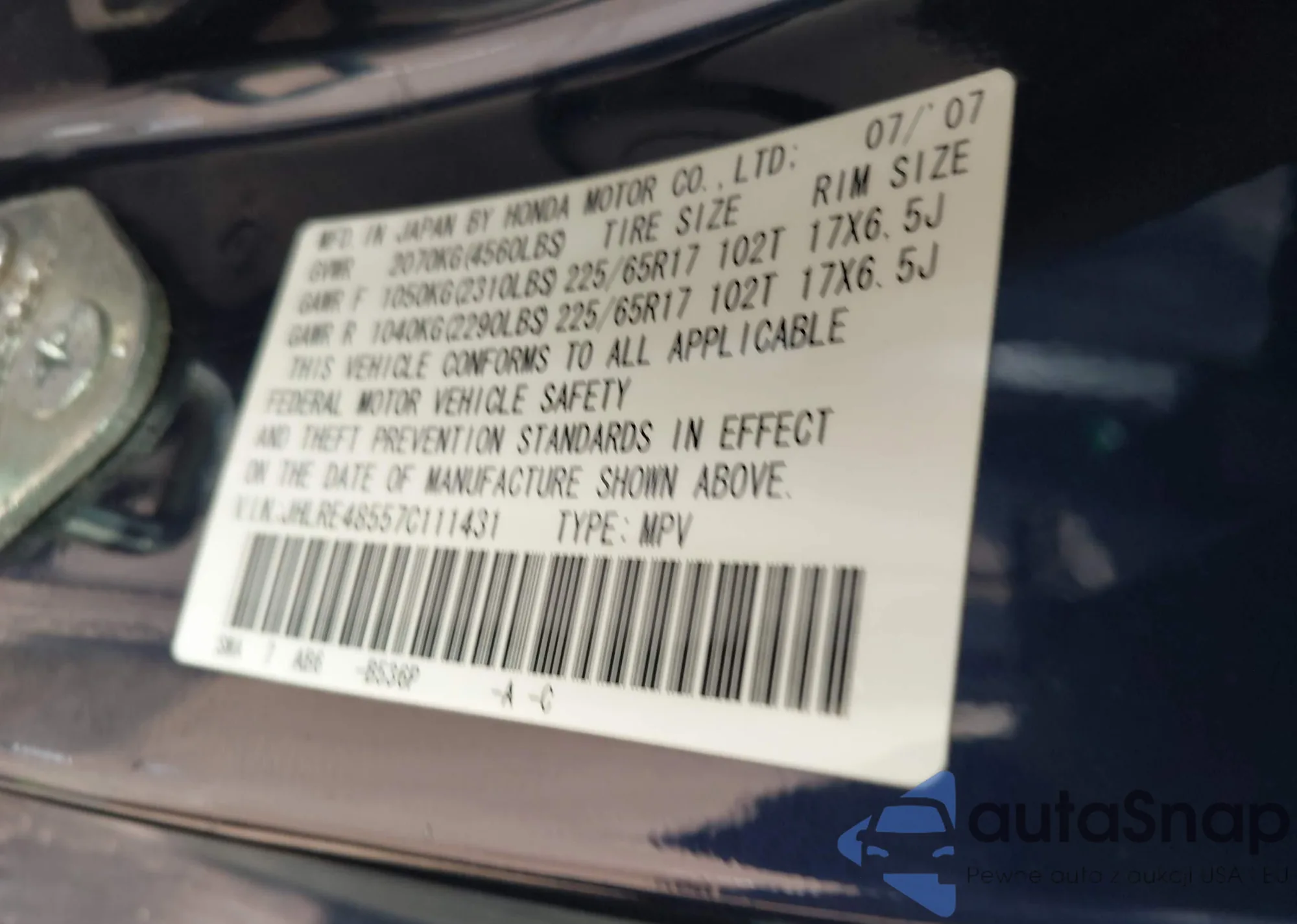VIN: JHLRE48557C111431