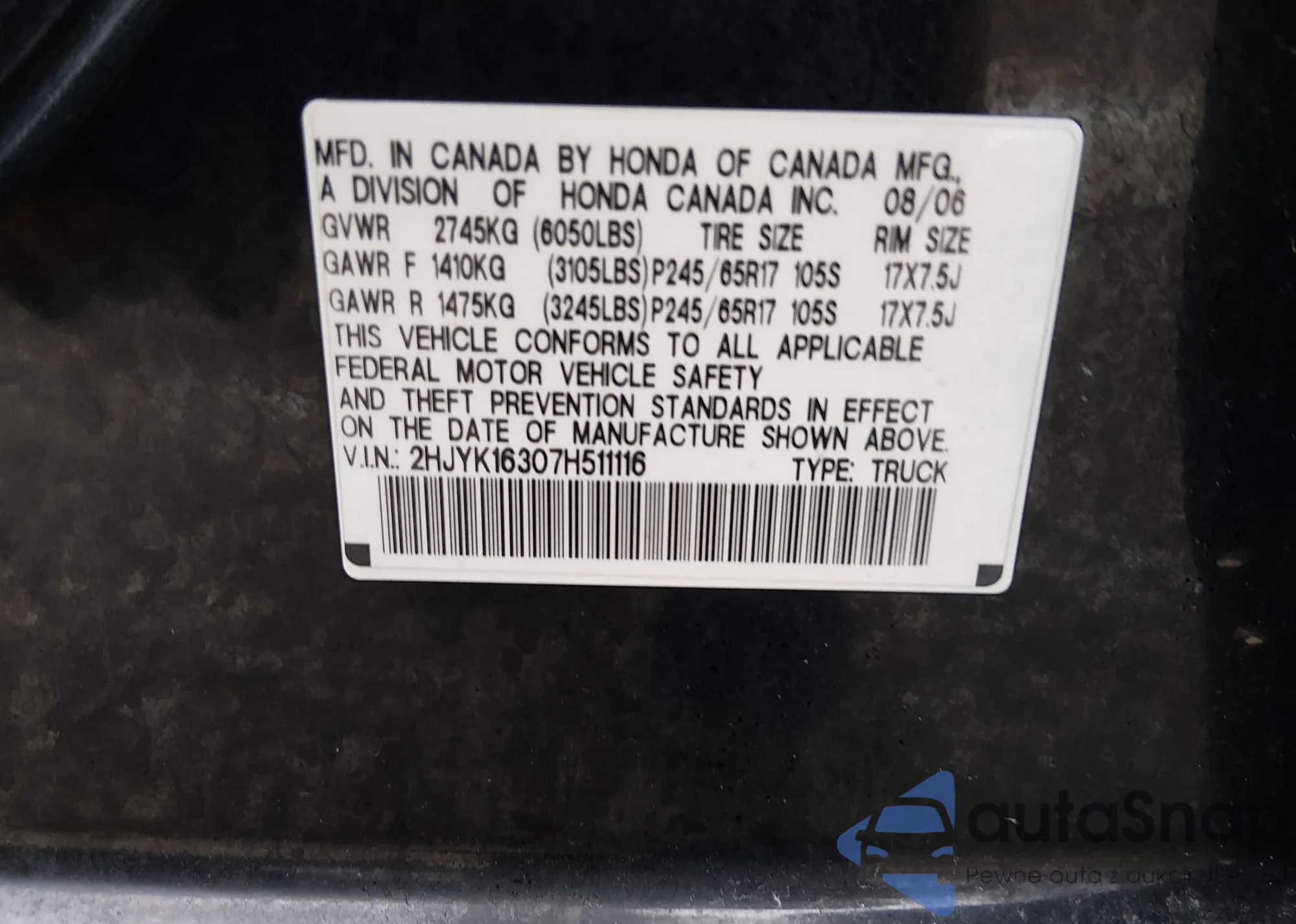 • VIN: 2HJYK16307H511116