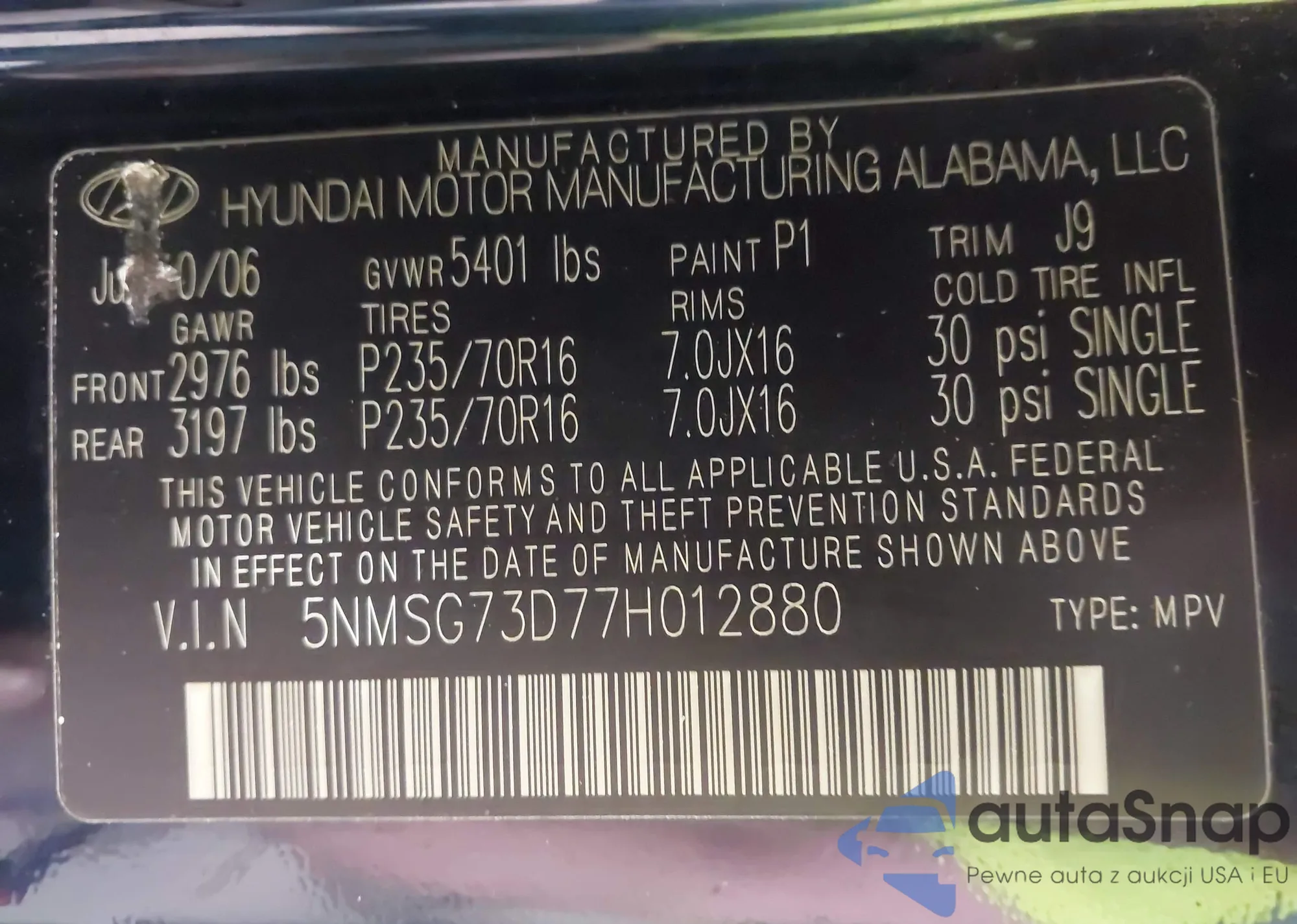 VIN: 5NMSG73D77H012880