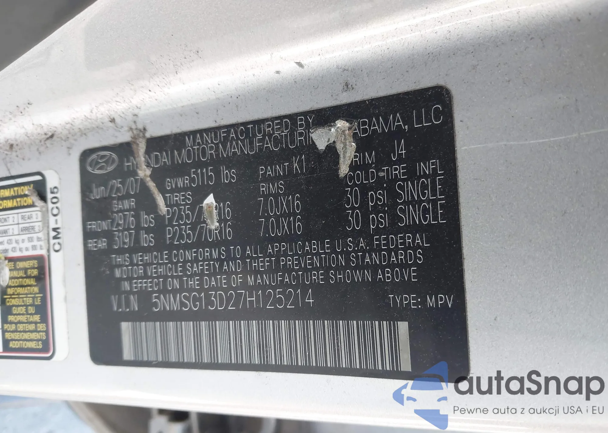 VIN: 5NMSG13D27H125214