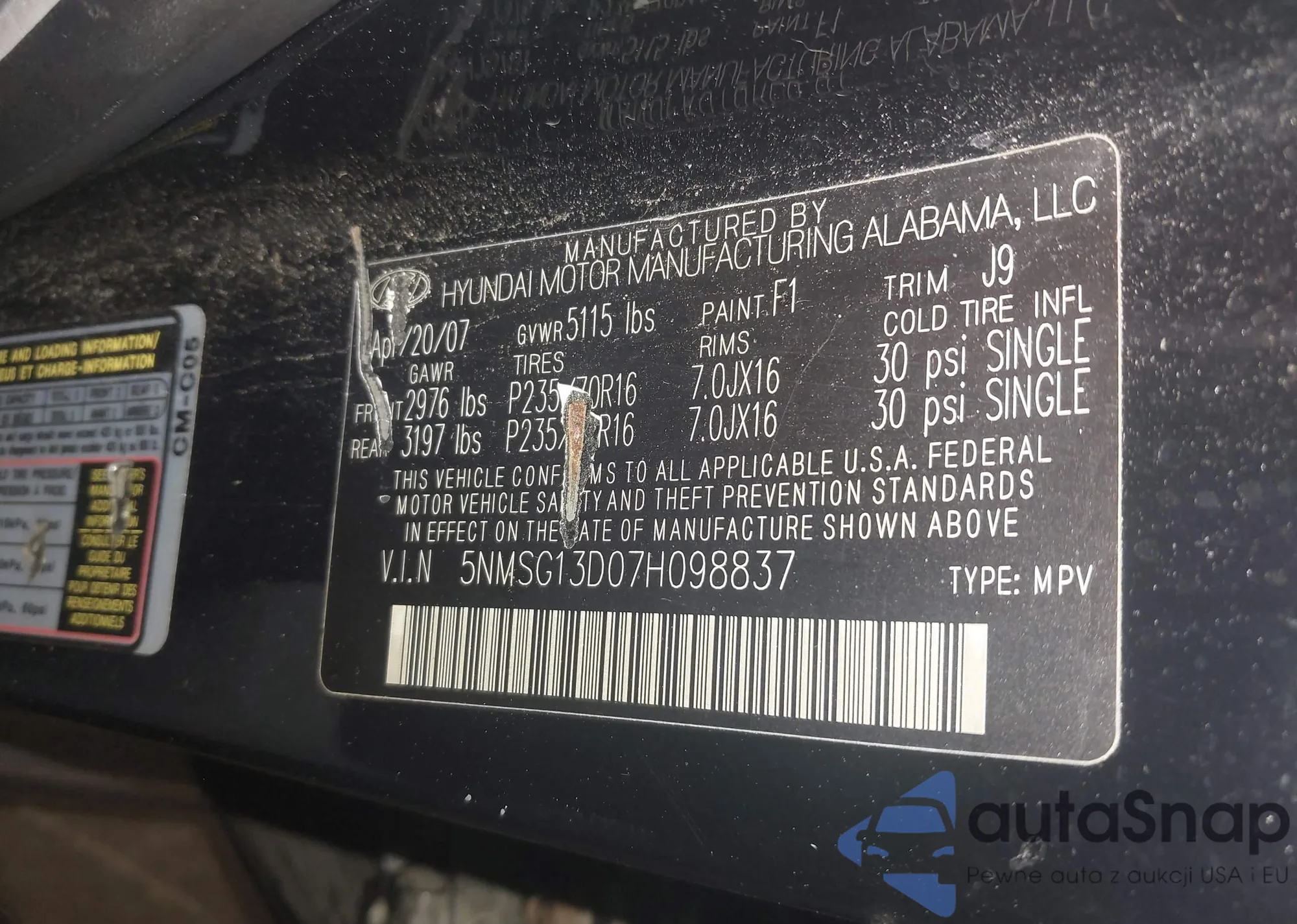 VIN: 5NMSG13D07H098837