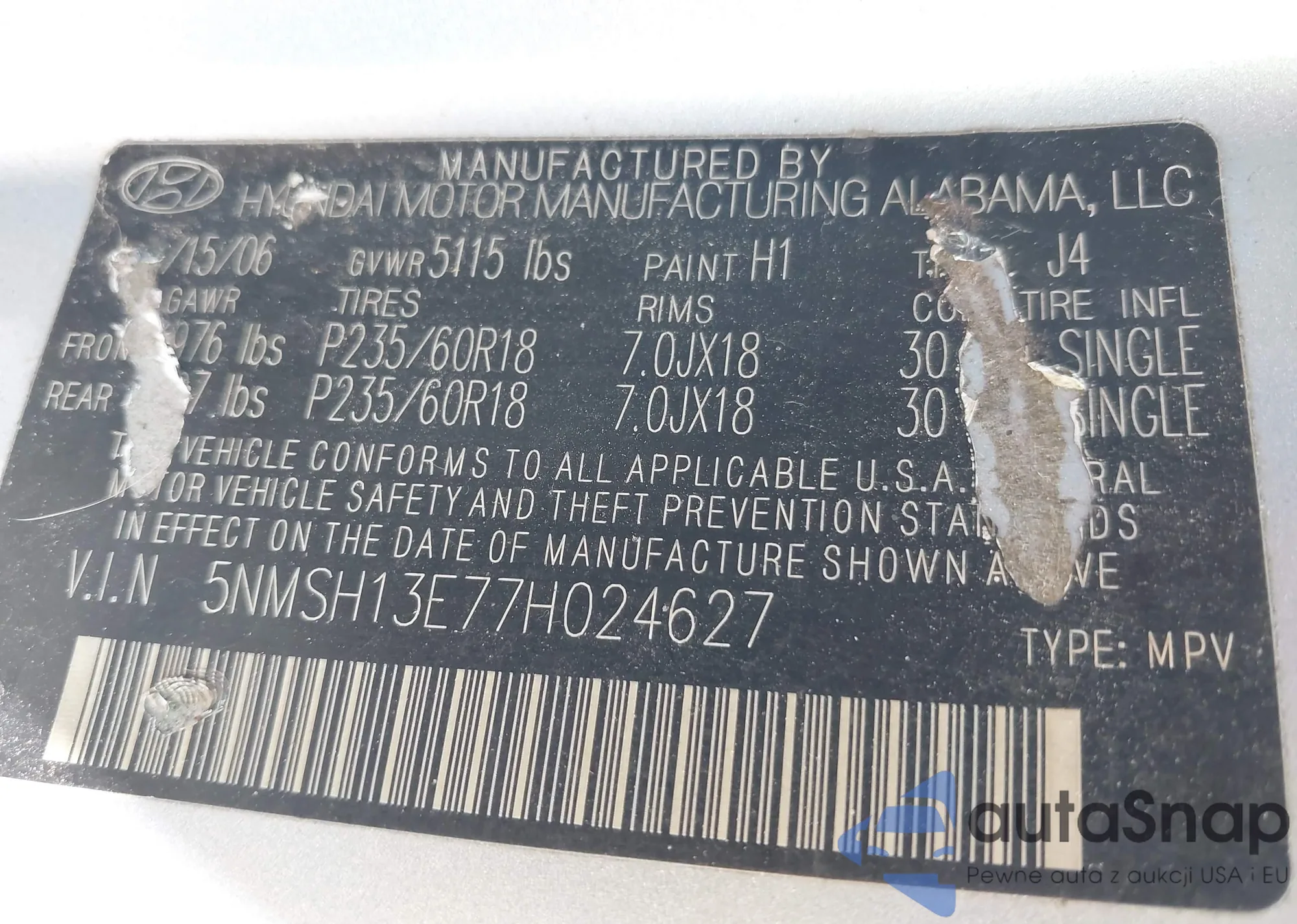 VIN: 5NMSH13E77H024627