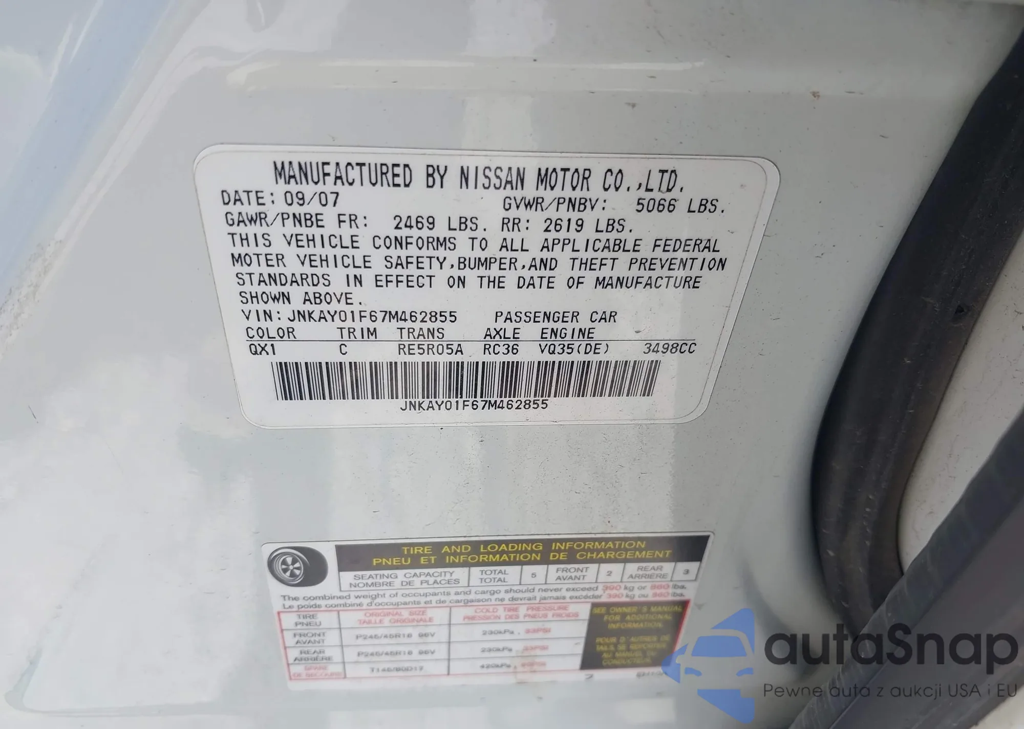 VIN: JNKAY01F67M462855