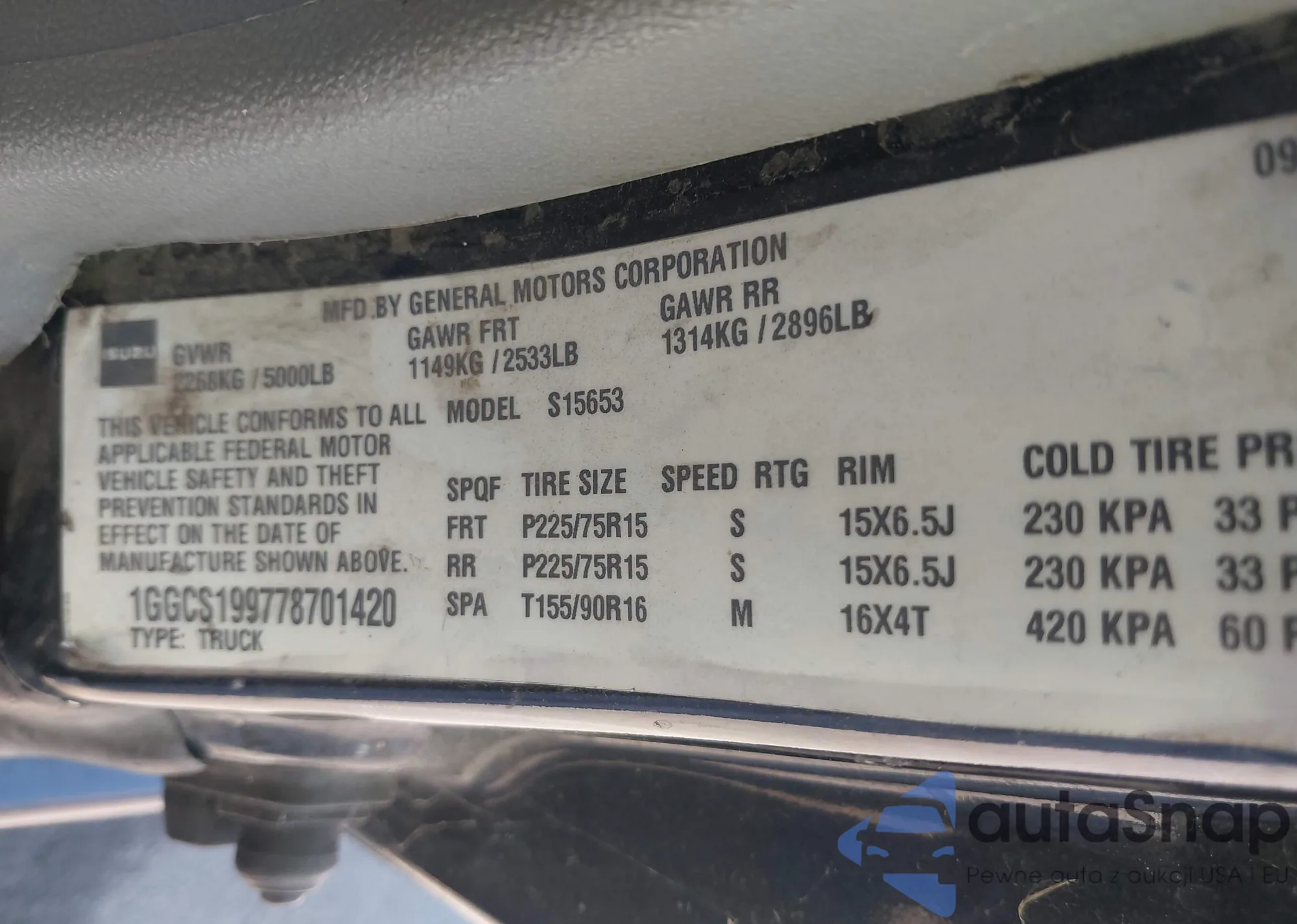 VIN: 1GGCS199778701420