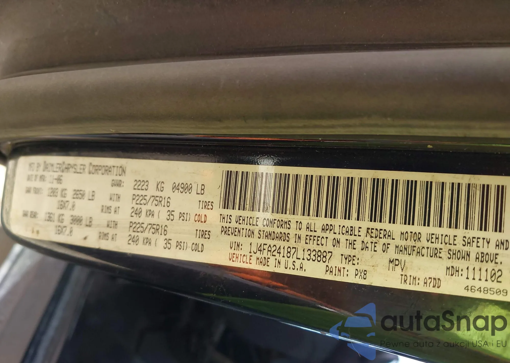 VIN: 1J4FA24187L133887
