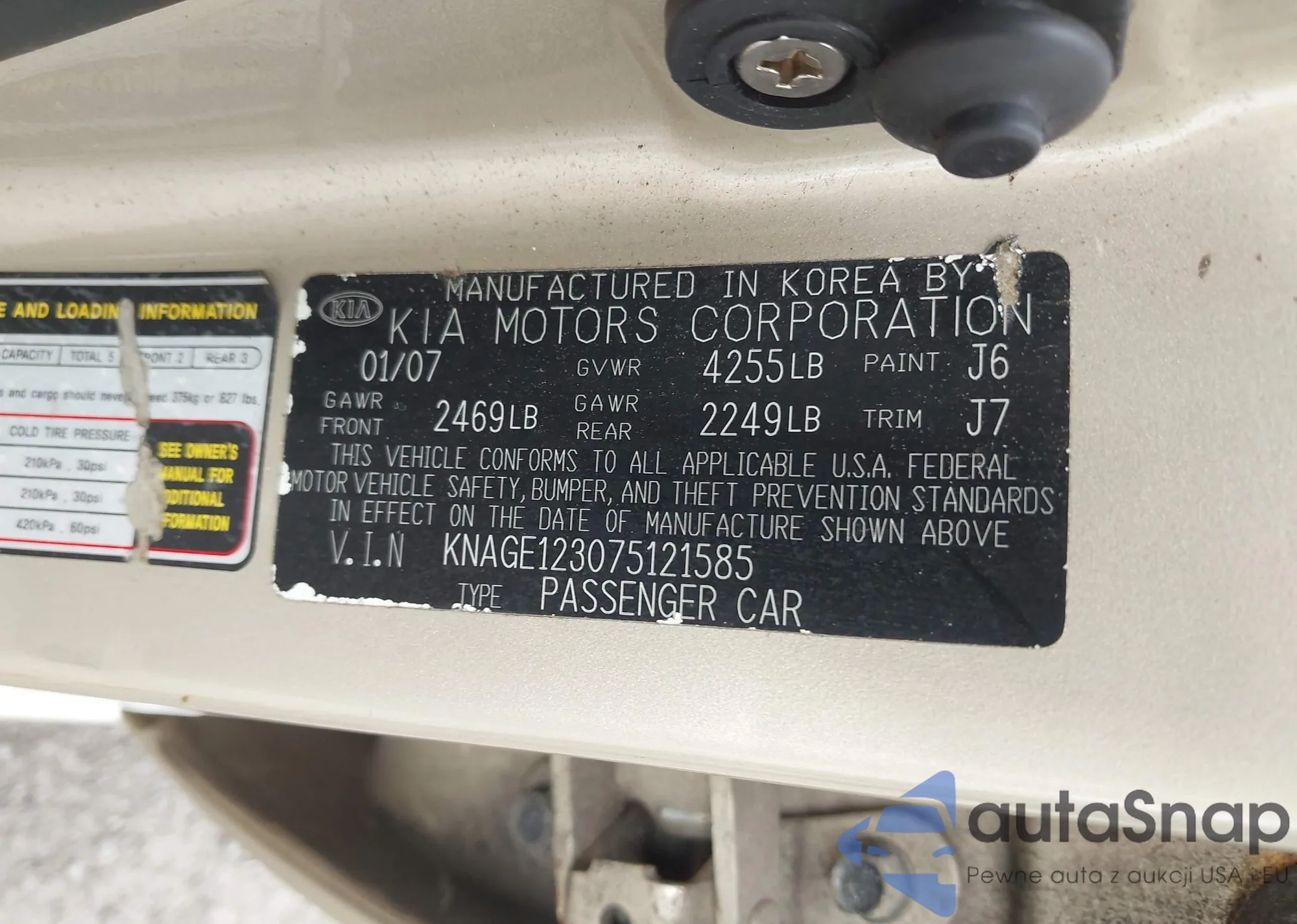 VIN: KNAGE123075121585