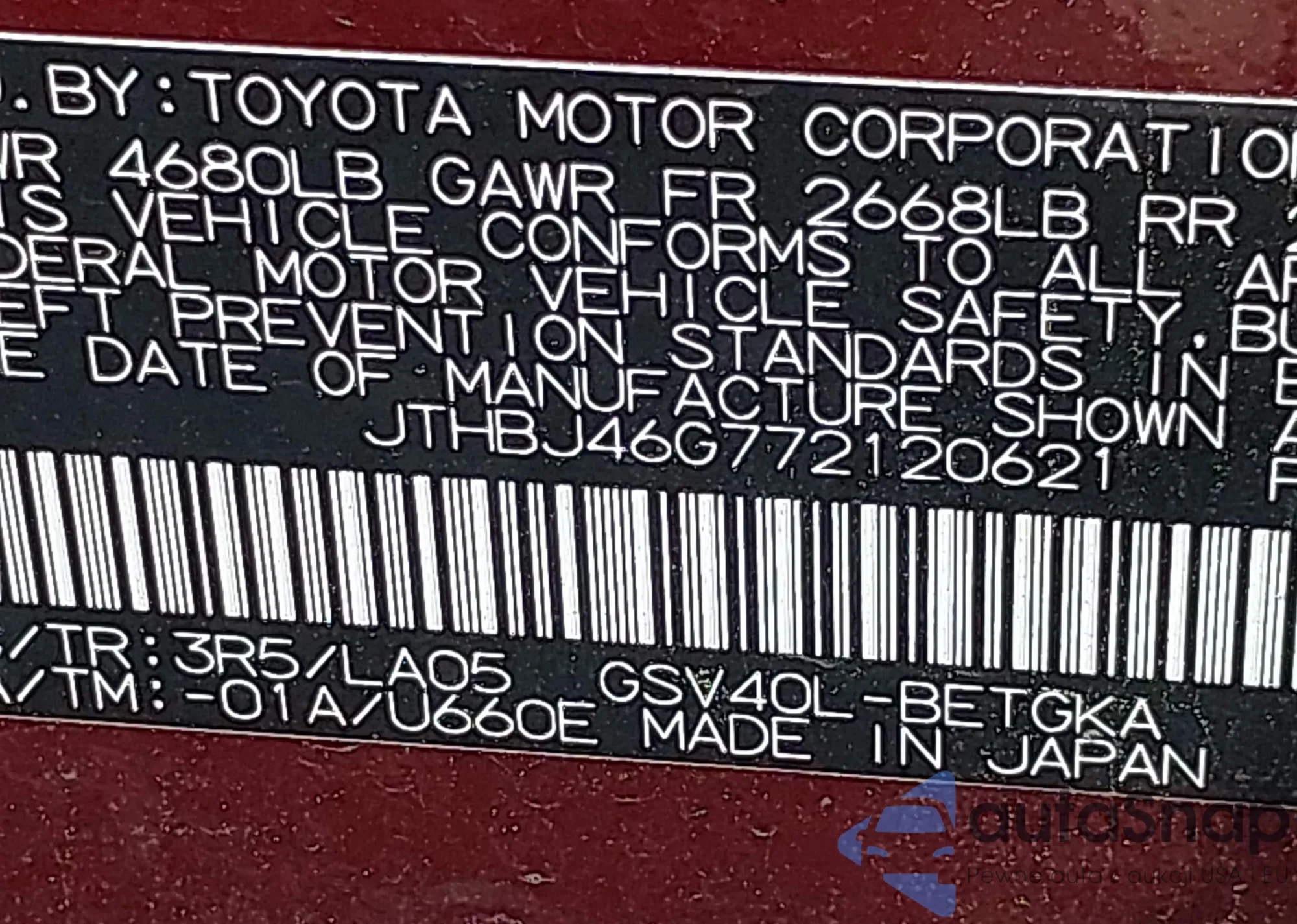 VIN: JTHBJ46G772120621