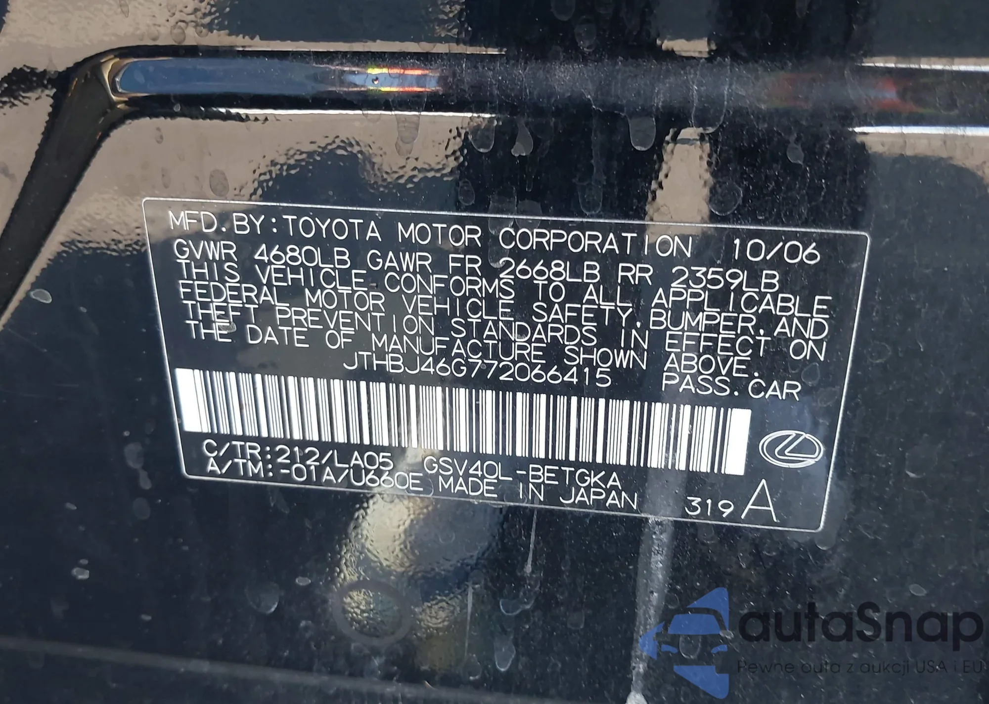 VIN: JTHBJ46G772066415