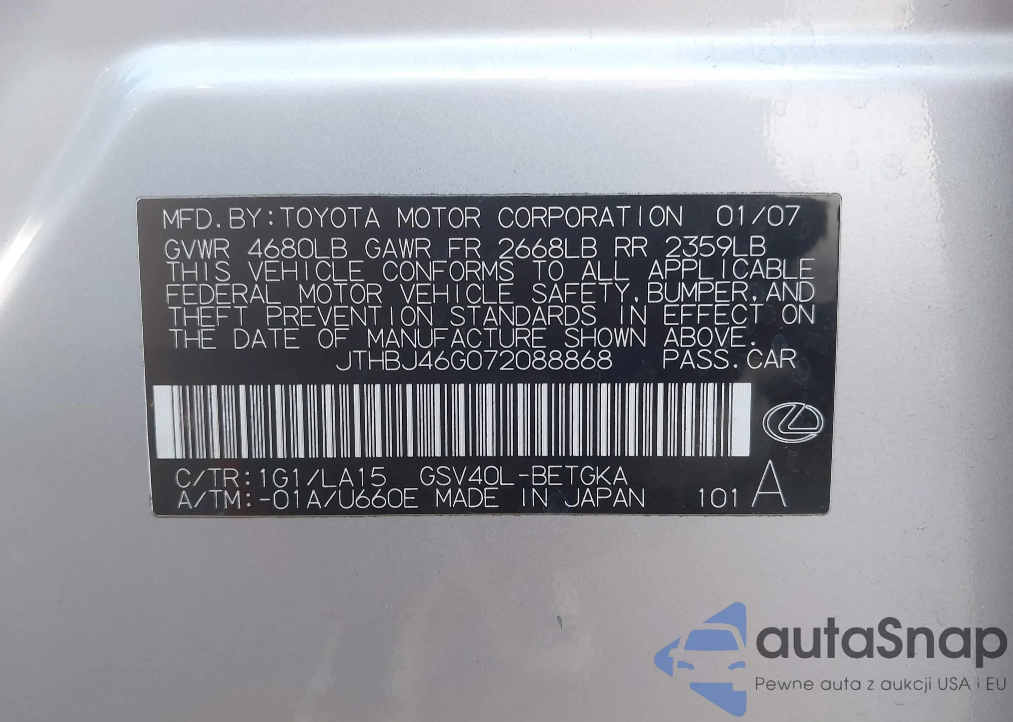 VIN: JTHBJ46G072088868