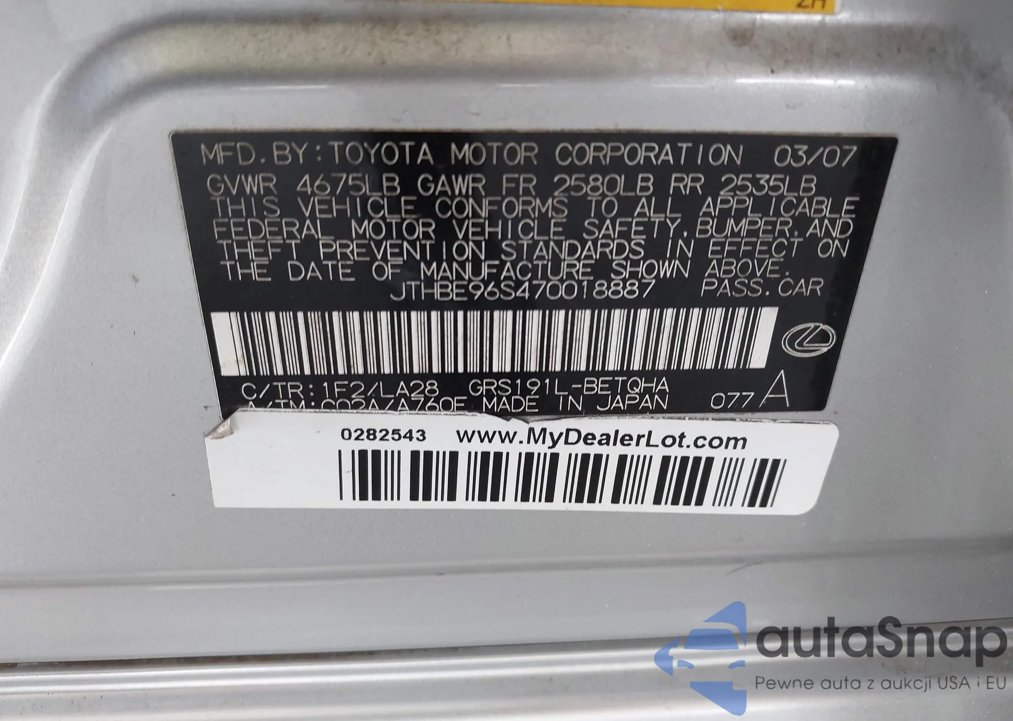 VIN: JTHBE96S470018887