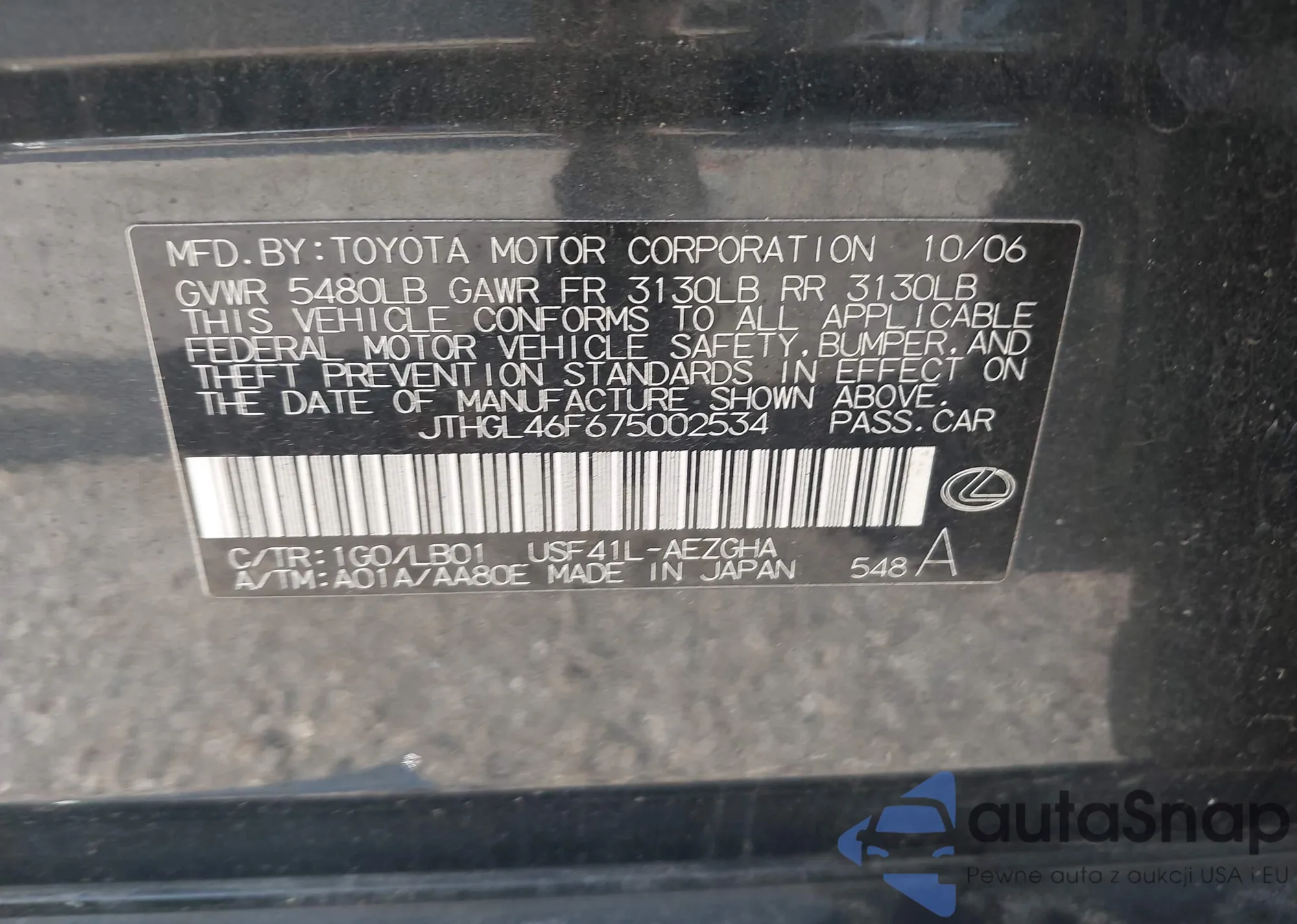 VIN: JTHGL46F675002534