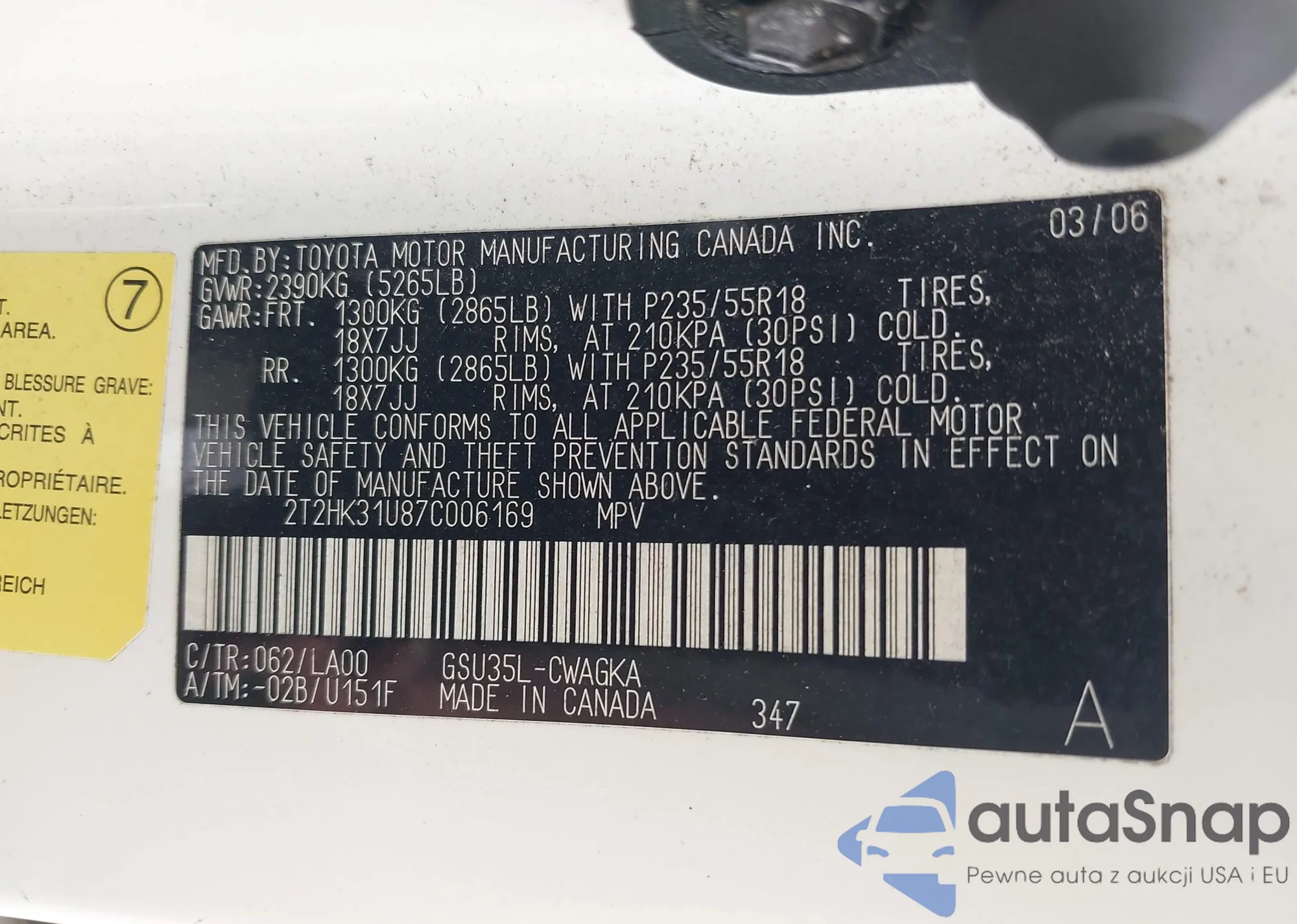 VIN: 2T2HK31U87C006169