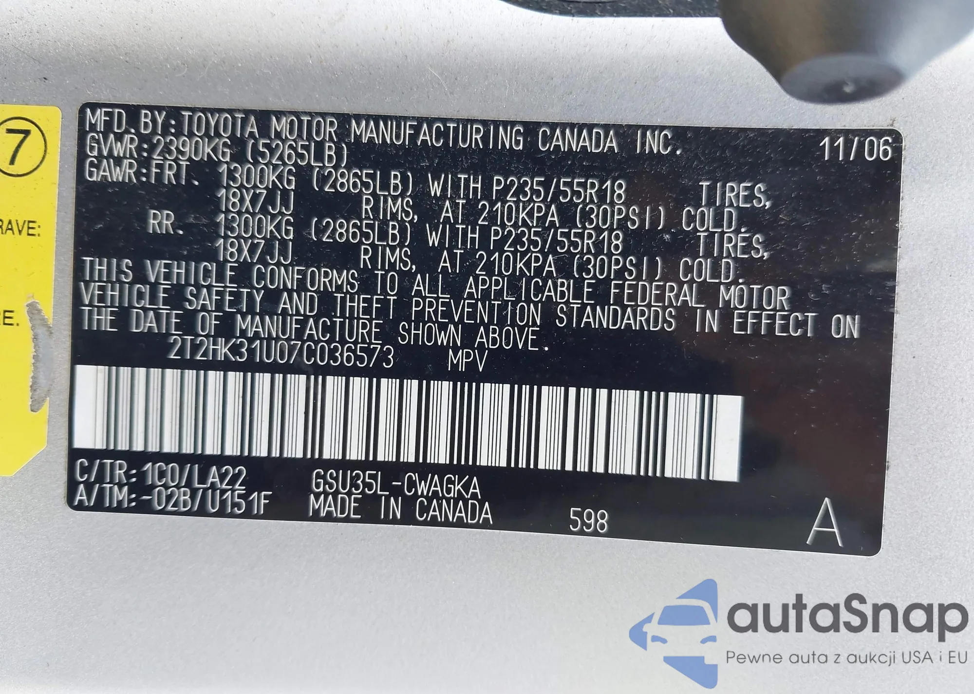 VIN: 2T2HK31U07C036573