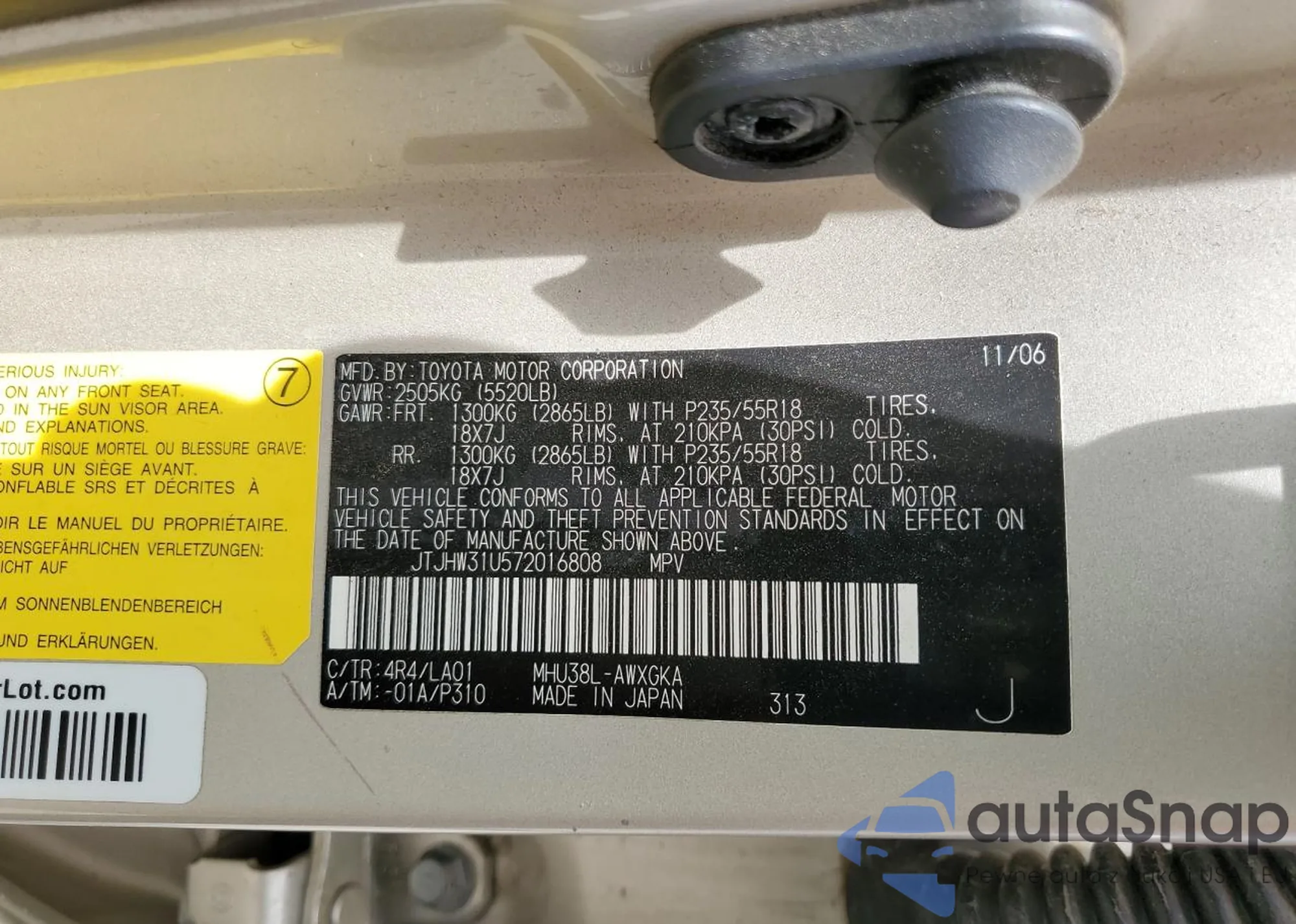 • VIN: JTJHW31U572016808