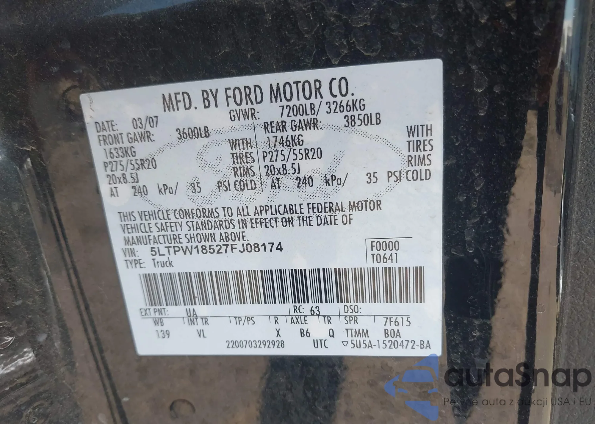 Автомобиль Lincoln Mark LT 2007 (VIN 5LTPW18527FJ08174) ранее не участвовал в торгах. Документы чистые, пробег соответствует или ниже среднего по рынку. Продаётся страховой компанией — рекомендуем покупку. Доставка в порт займет около 6–8 недель.
