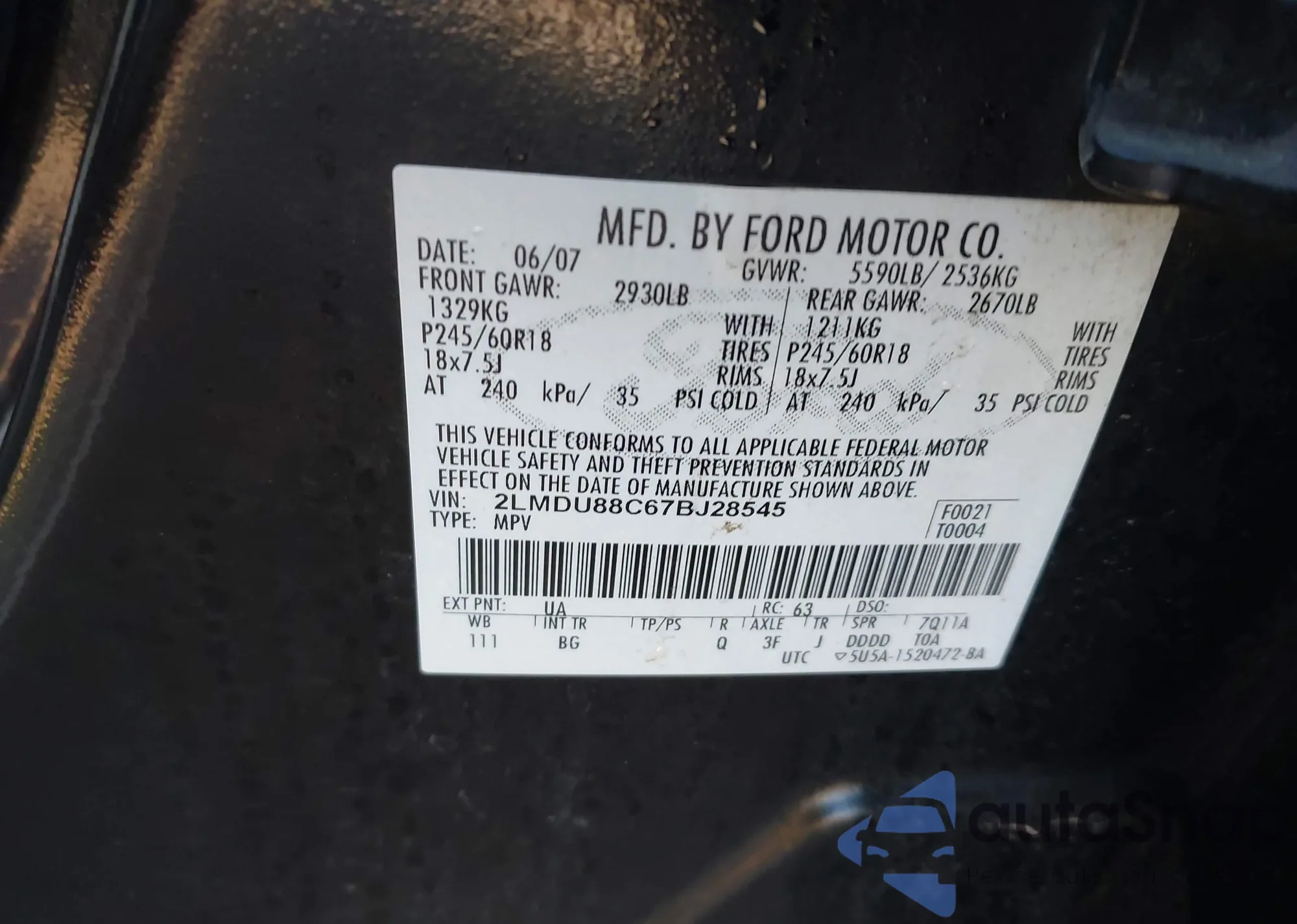 VIN: 2LMDU88C67BJ28545