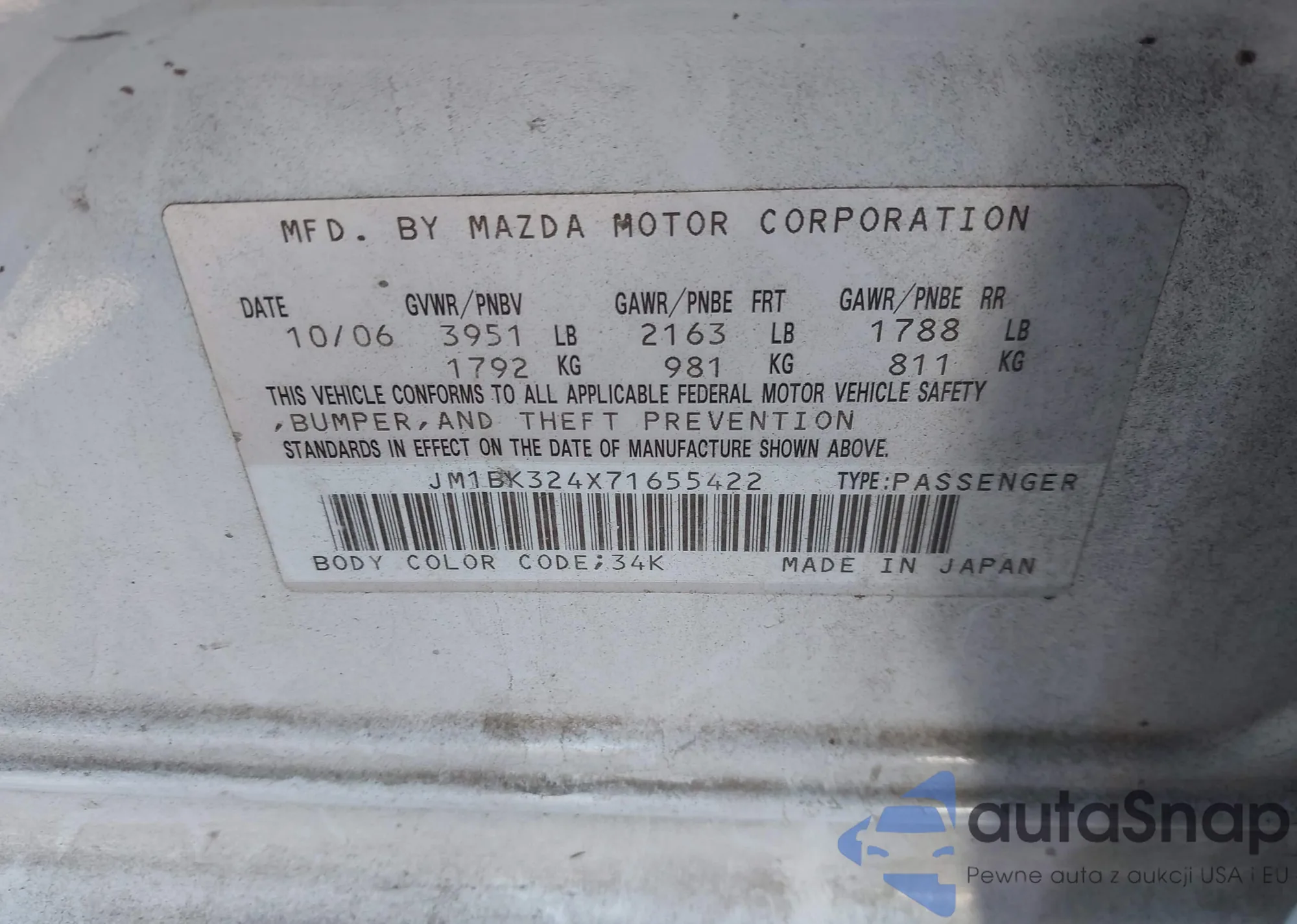 VIN: JM1BK324X71655422