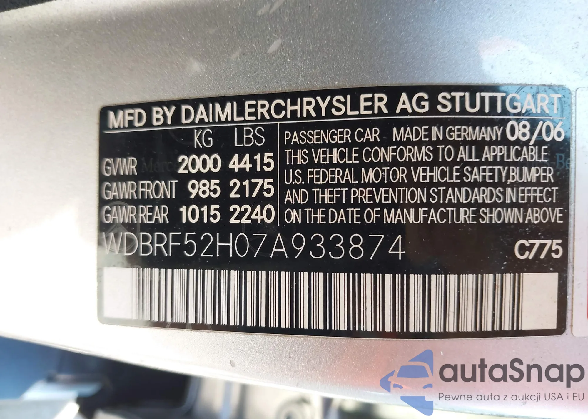 VIN: WDBRF52H07A933874