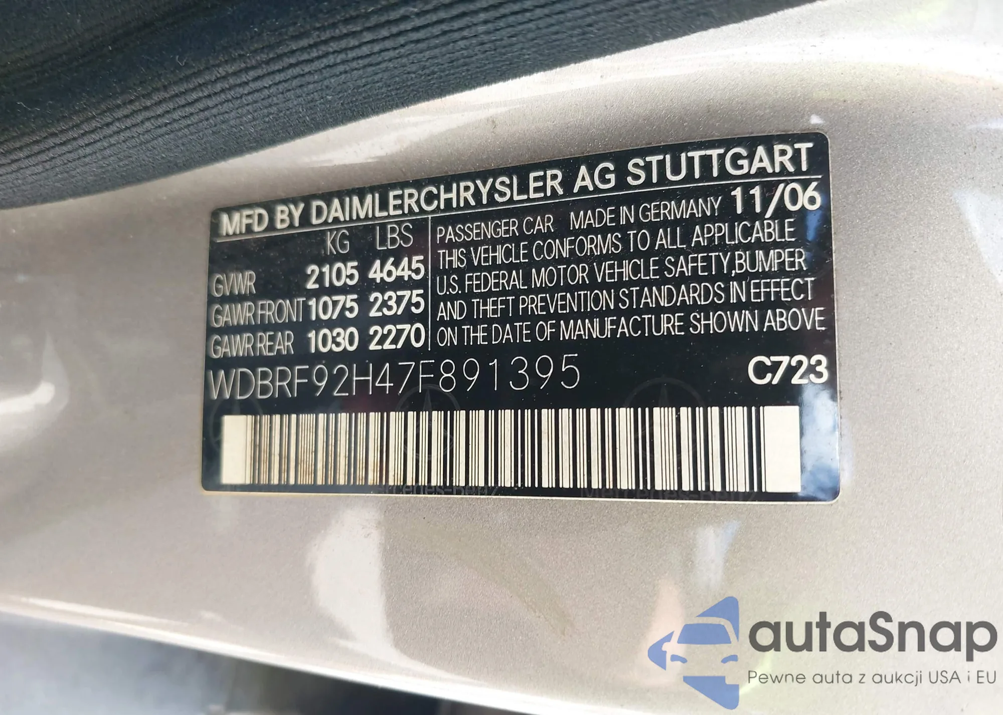 • VIN: WDBRF92H47F891395