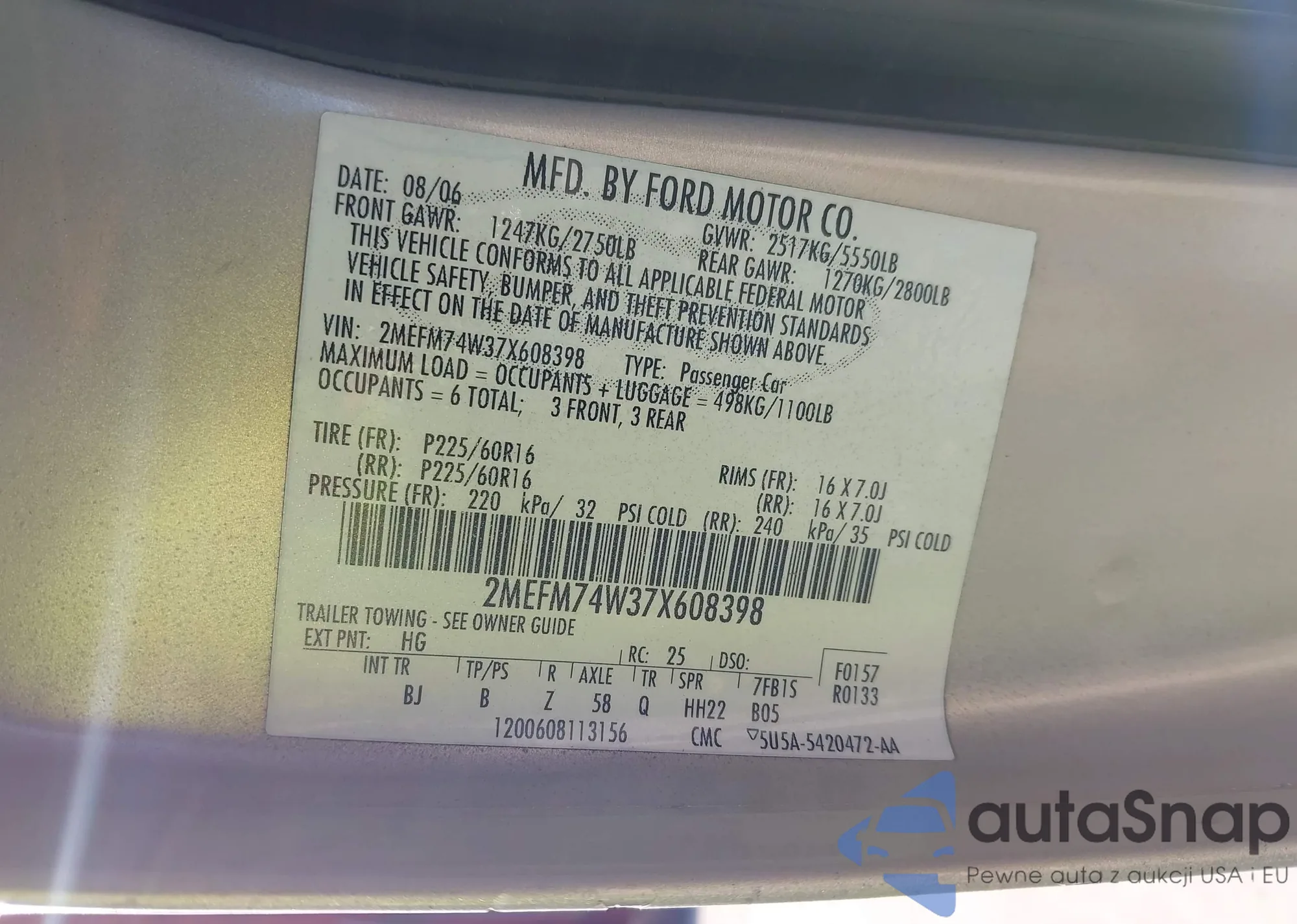 Автомобиль Mercury Grand Marquis 2007 (VIN 2MEFM74W37X608398) продаётся непроверенным продавцом. Рекомендуем проверить отчет Carfax и подтвердить возможность регистрации перед покупкой.