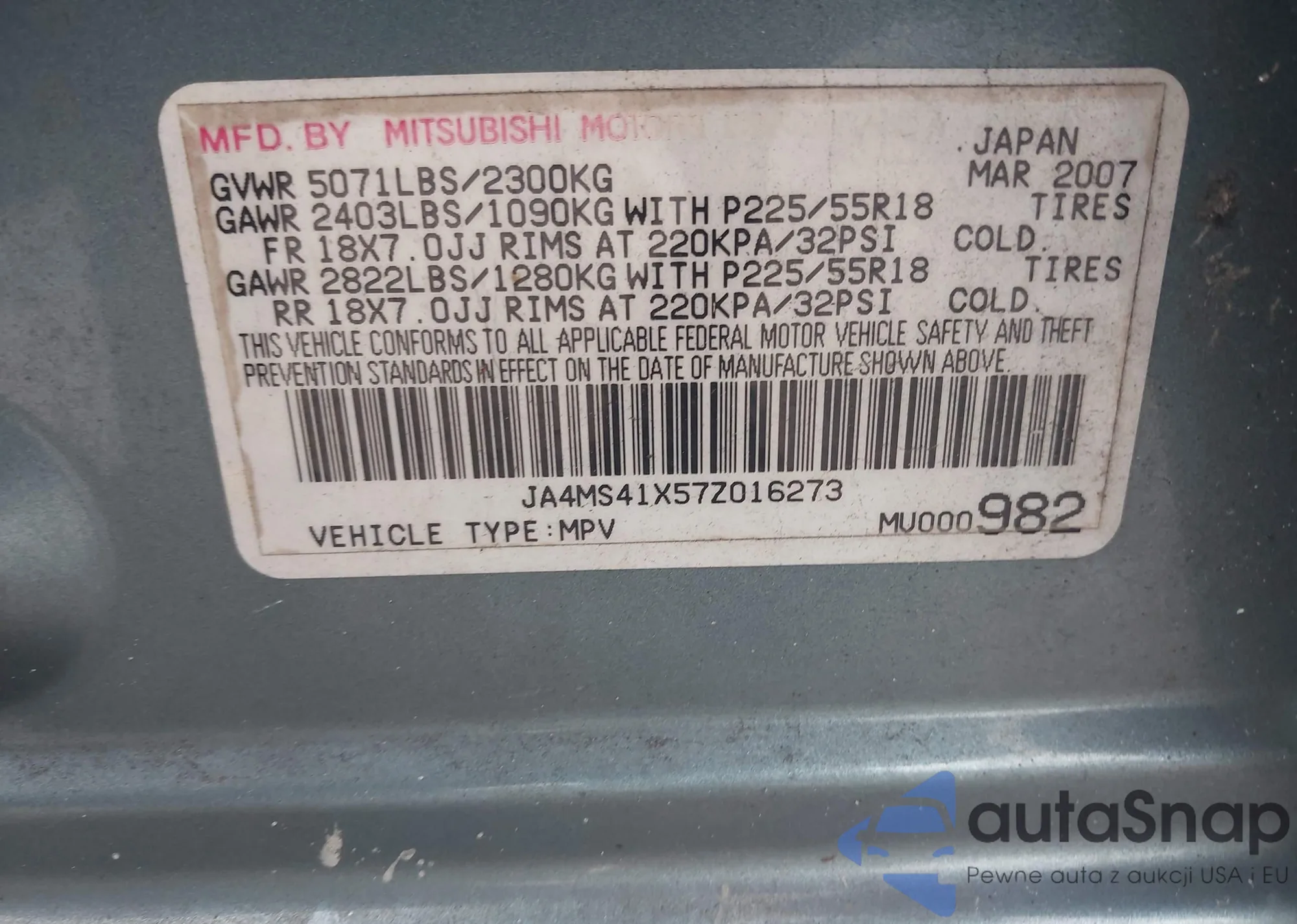 VIN: JA4MS41X57Z016273