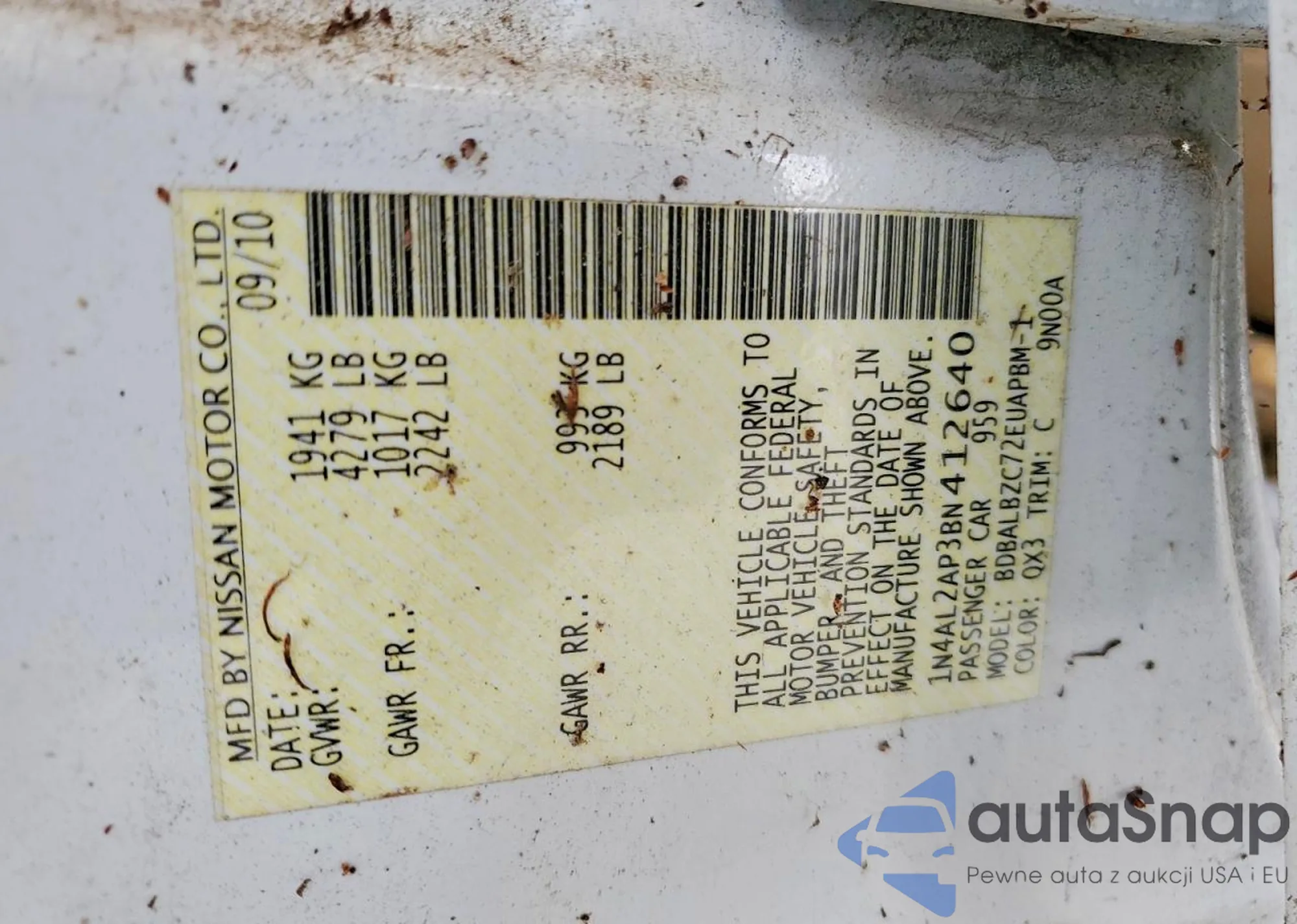 VIN: 1N4AL2AP3BN412640