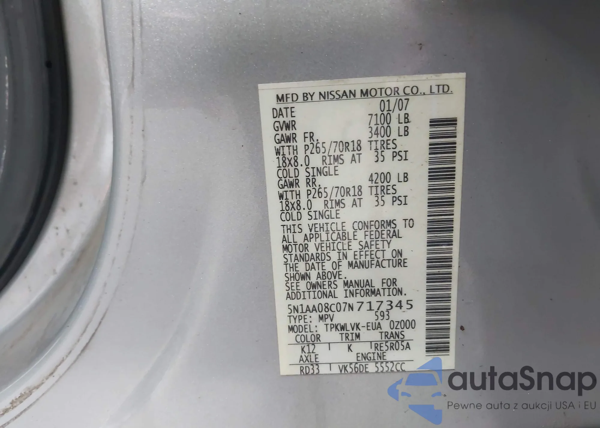 VIN: 5N1AA08C07N717345
