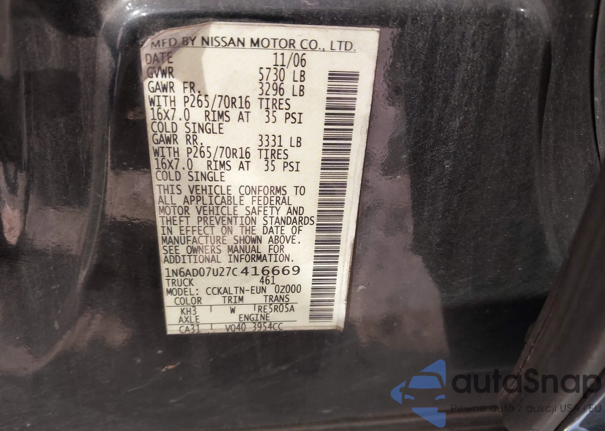 VIN: 1N6AD07U27C416669