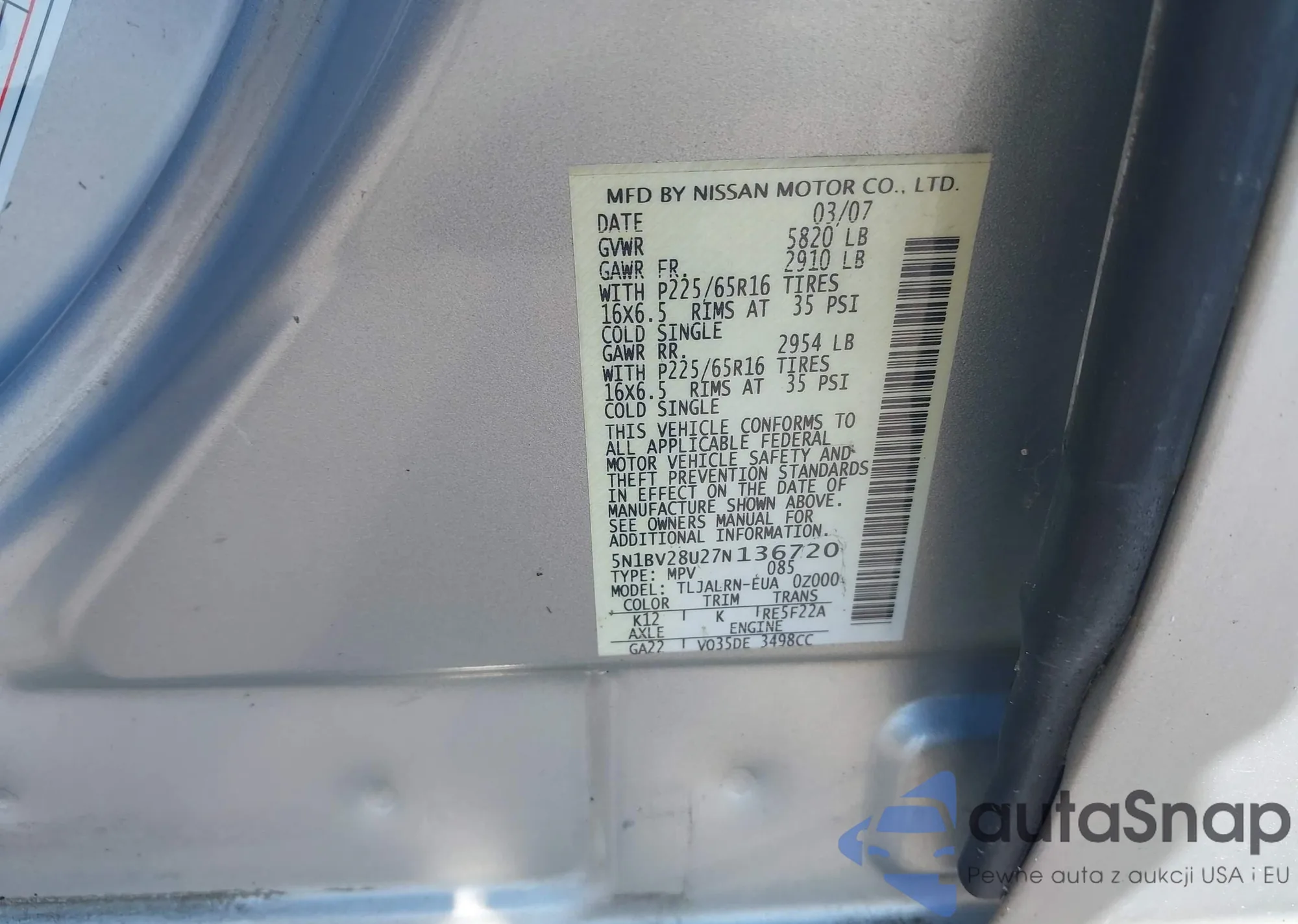 VIN: 5N1BV28U27N136720