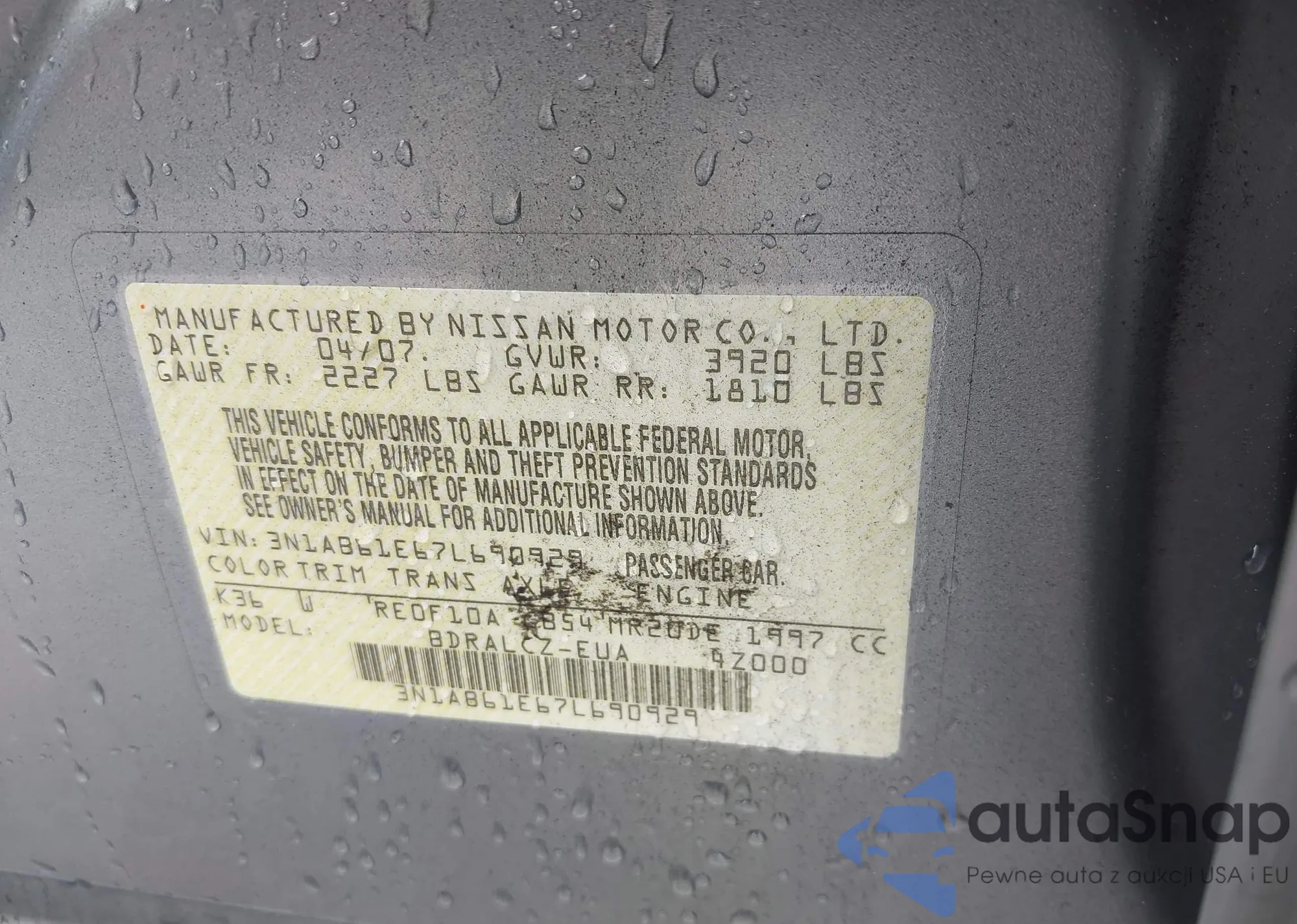 VIN: 3N1AB61E67L690929