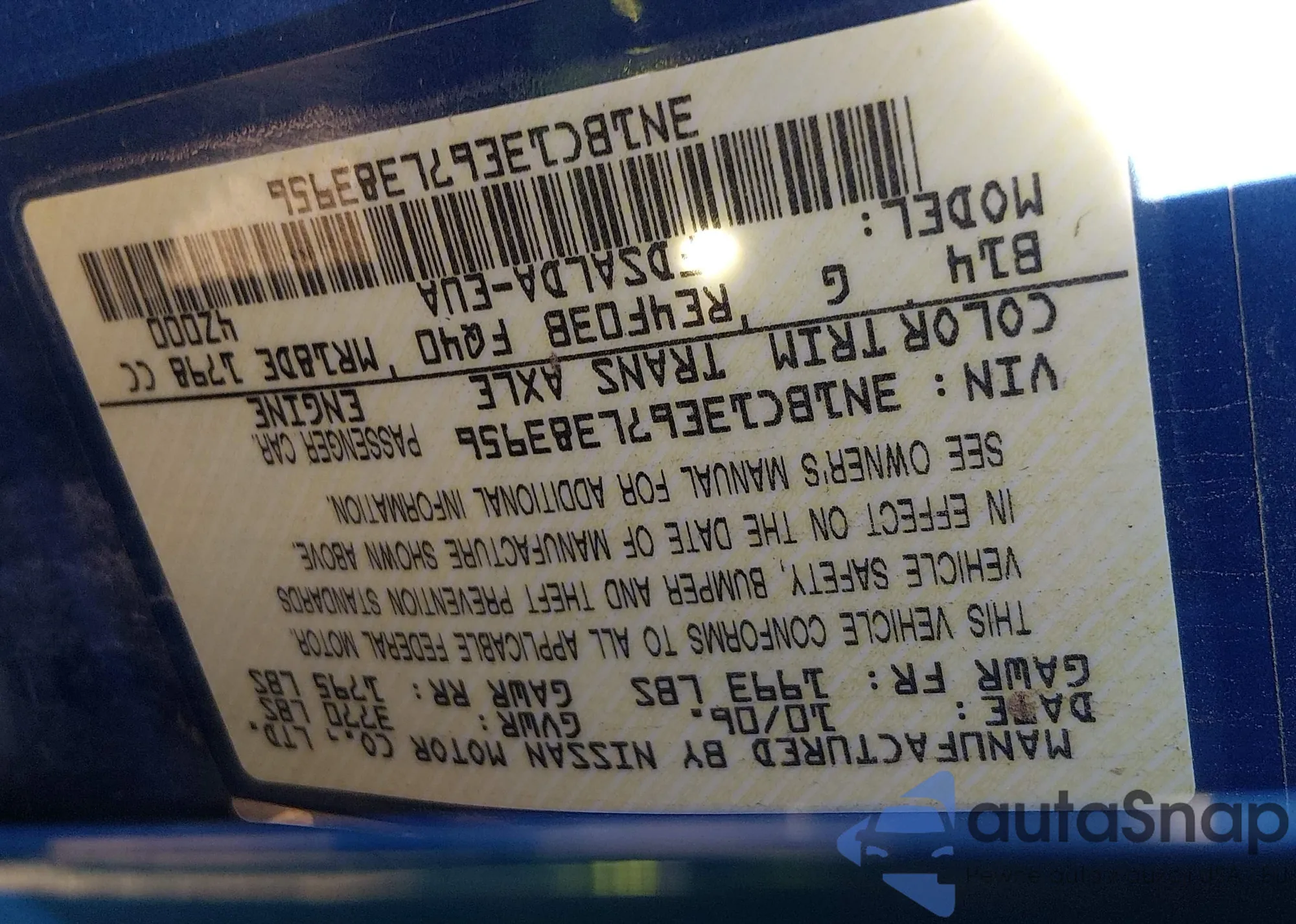 VIN: 3N1BC13E67L383956